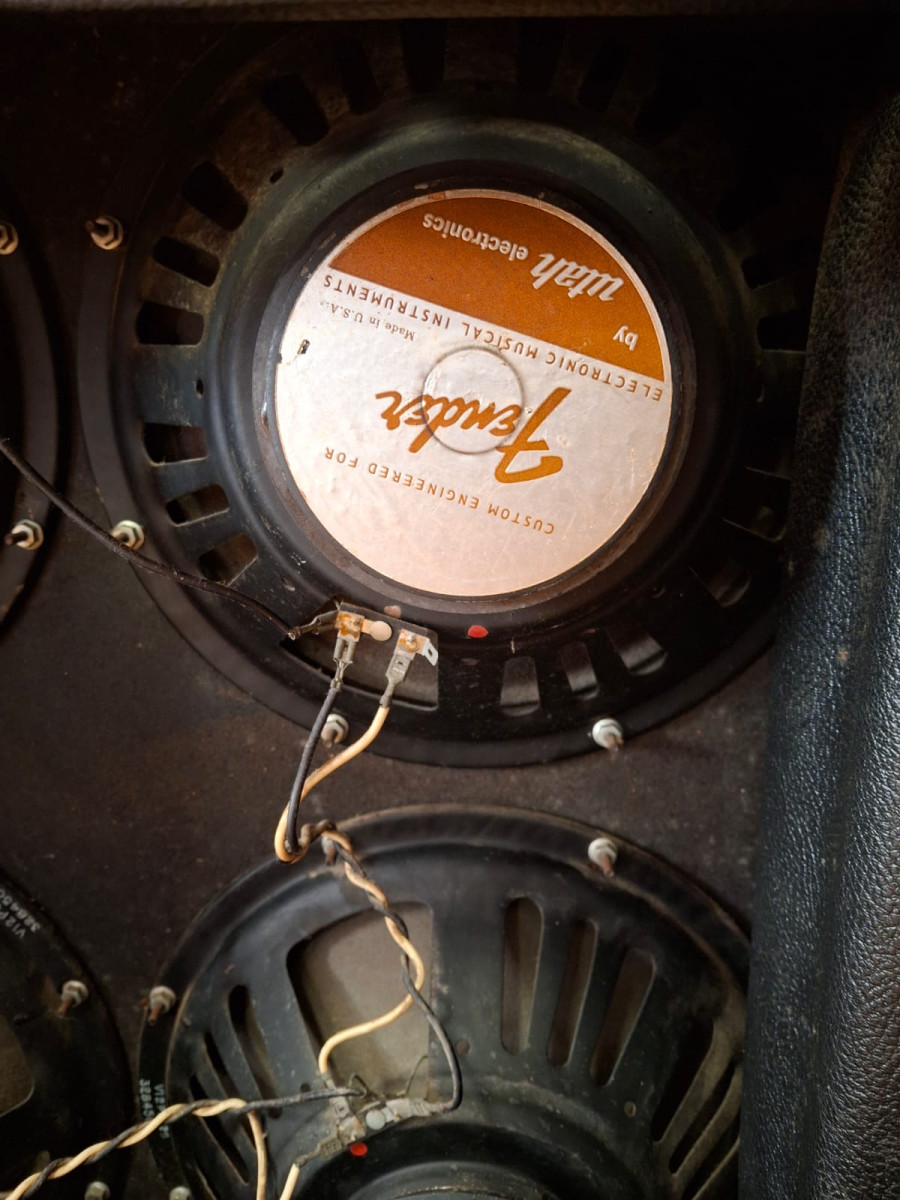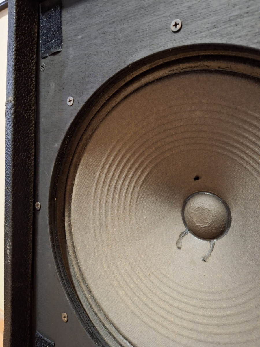 El amplificador ha sido completamente revisado: los condensadores de filtro fueron reemplazados recientemente por un técnico profesional, utilizando condensadores alemanes F&T nuevos para garantizar una durabilidad a largo plazo. Todas las válvulas de previo y potencia han sido probadas y se encuentran en excelente estado. El único defecto menor es que uno de los cuatro altavoces originales presenta un pequeño agujero en el cono (claramente visible en las fotos). Esto no tiene absolutamente ningún efecto en el sonido.