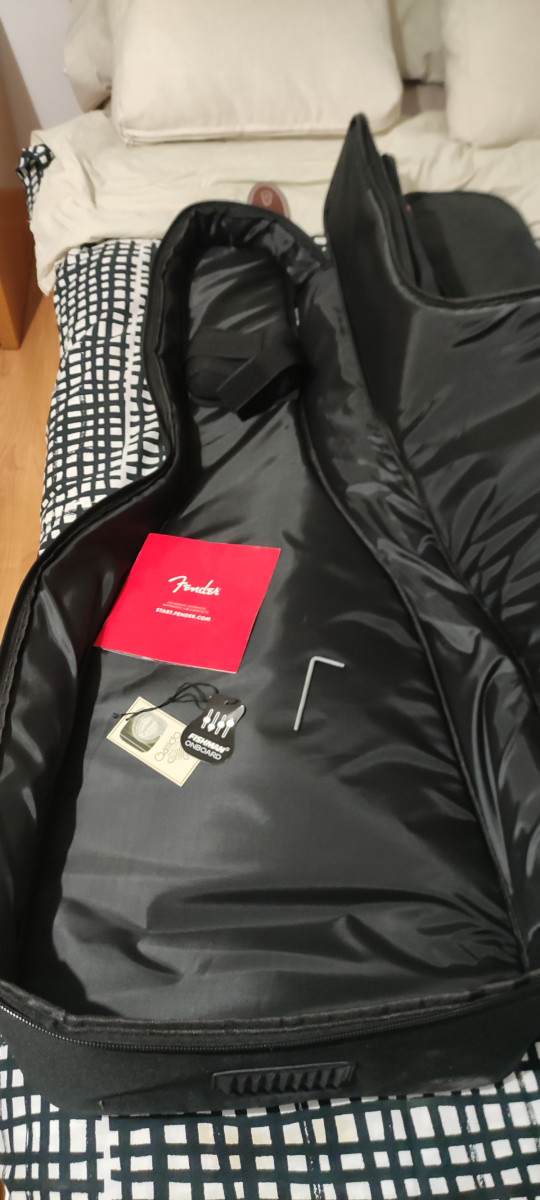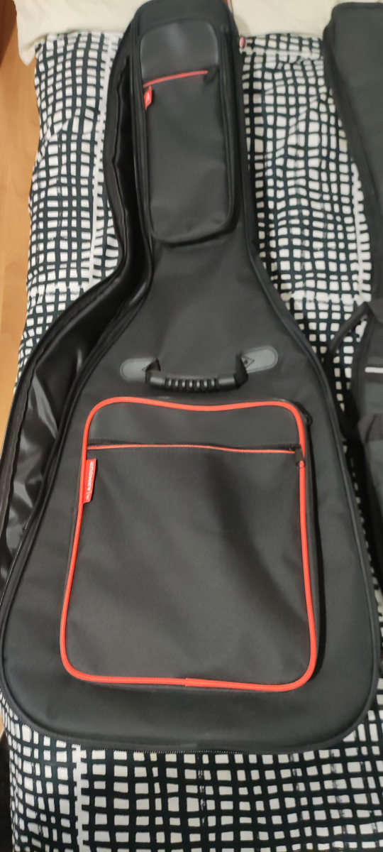 La funda costó 67€, (la guitarra 335€) es muy mullida, con correas acolchadas para llevar en la espalda.