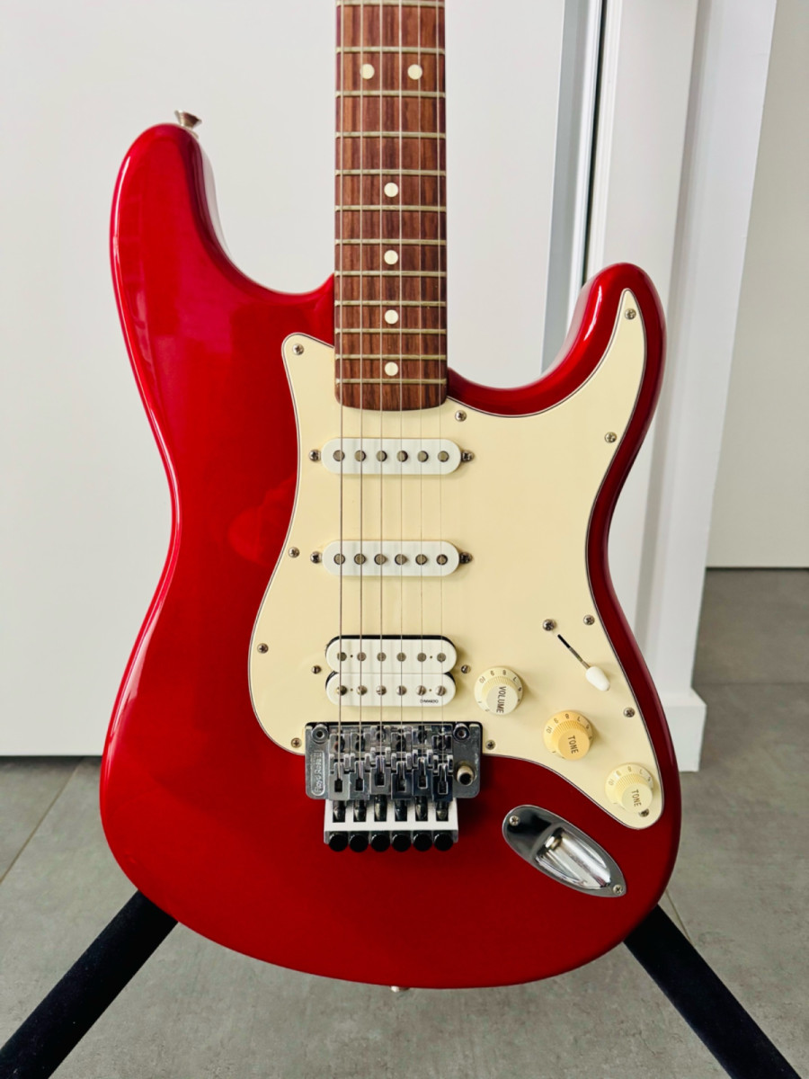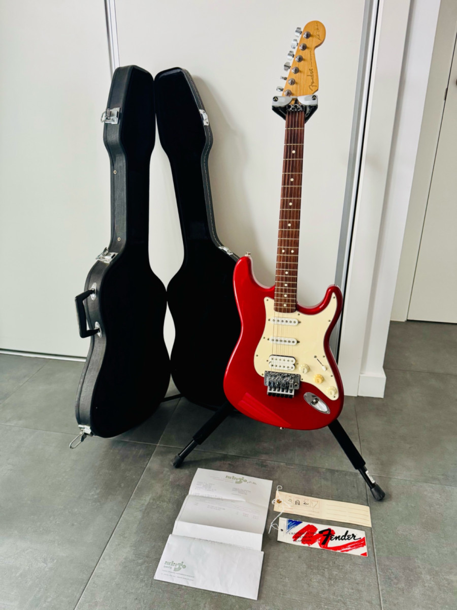 Fender Richie Sambora Stratocaster, made in mexico de 1995. Como nueva. En su estuche desde hace 25 años y con factura de compra. Crimson Red Metallic. Toda de serie y como si la compraras hoy en una tienda. No cambios.