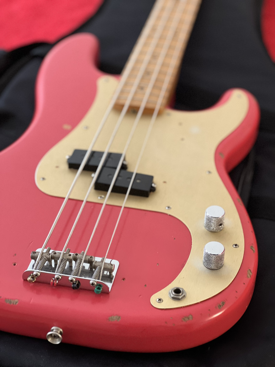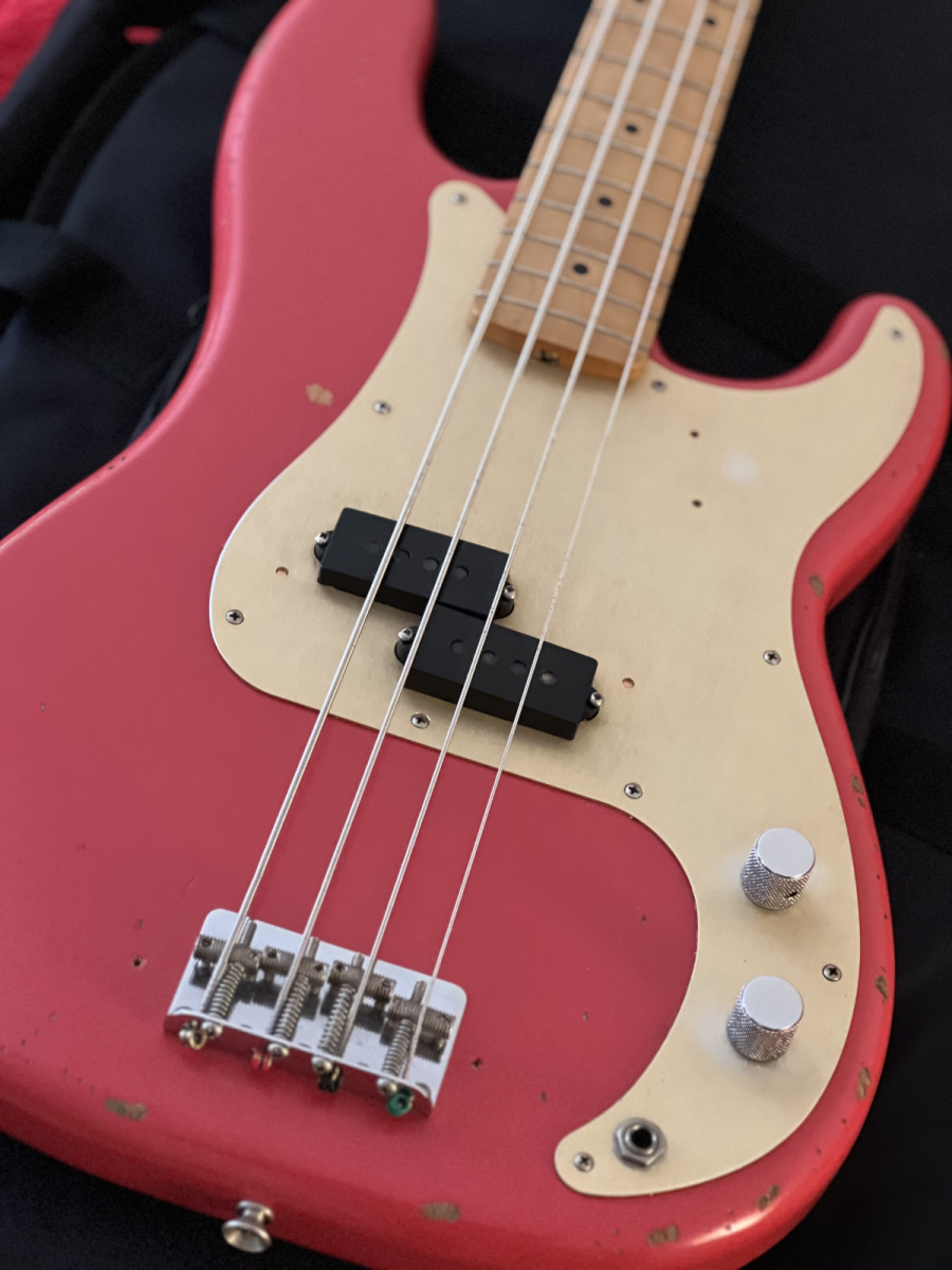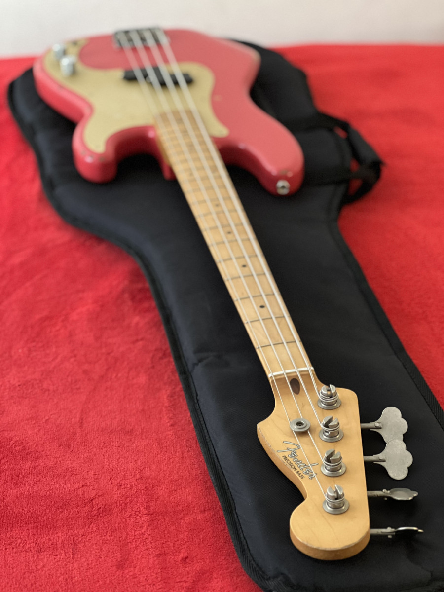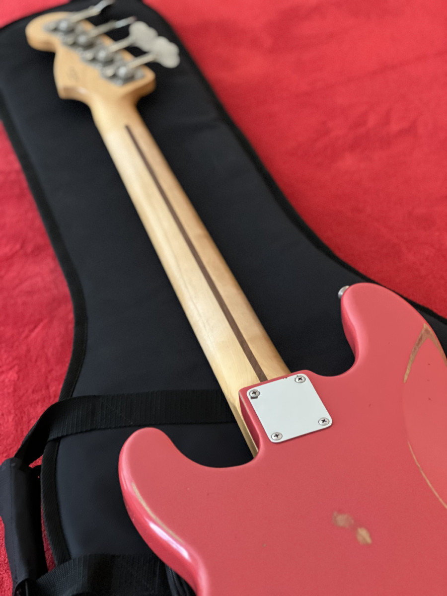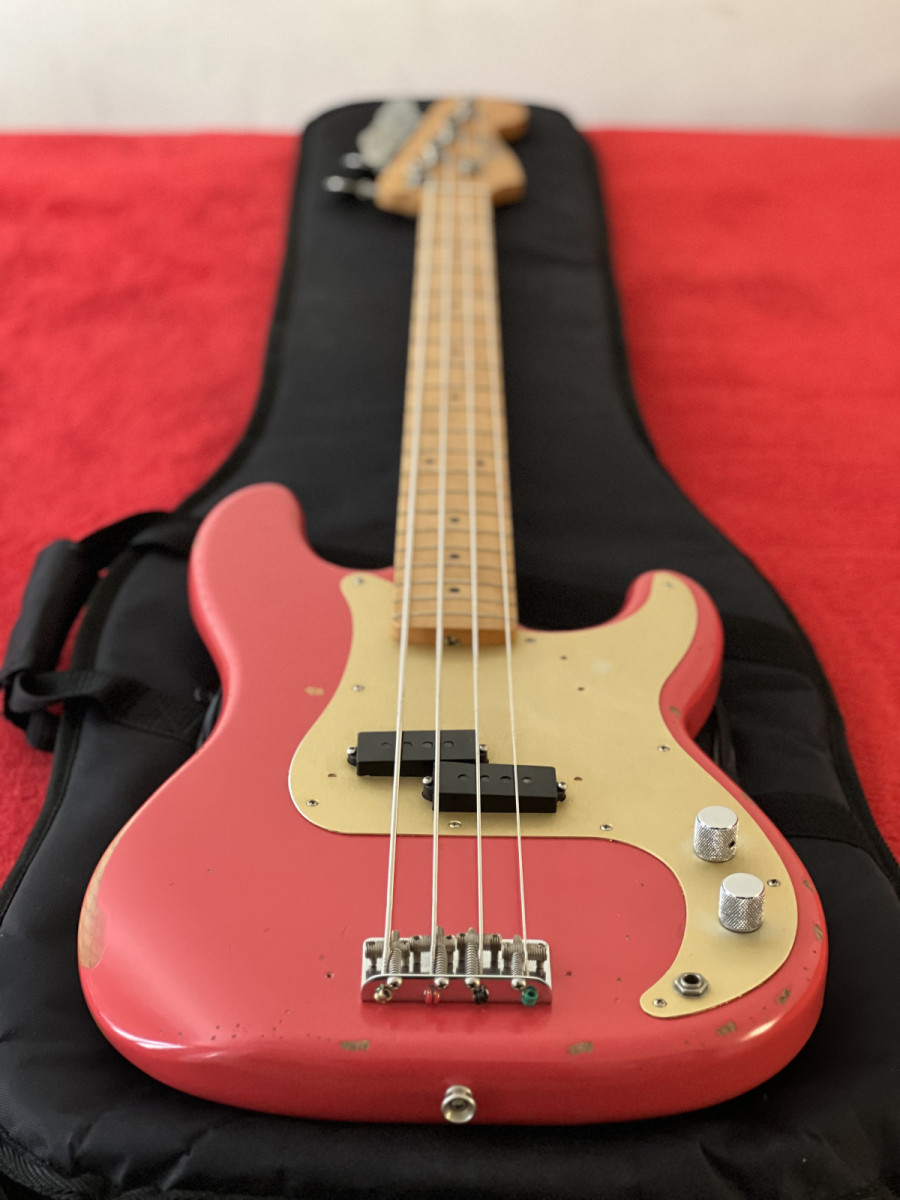 Saco para cambio este hermoso Fender Road Worn 50’s P-Bass fiesta red, del 2017, MIM.