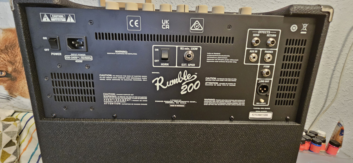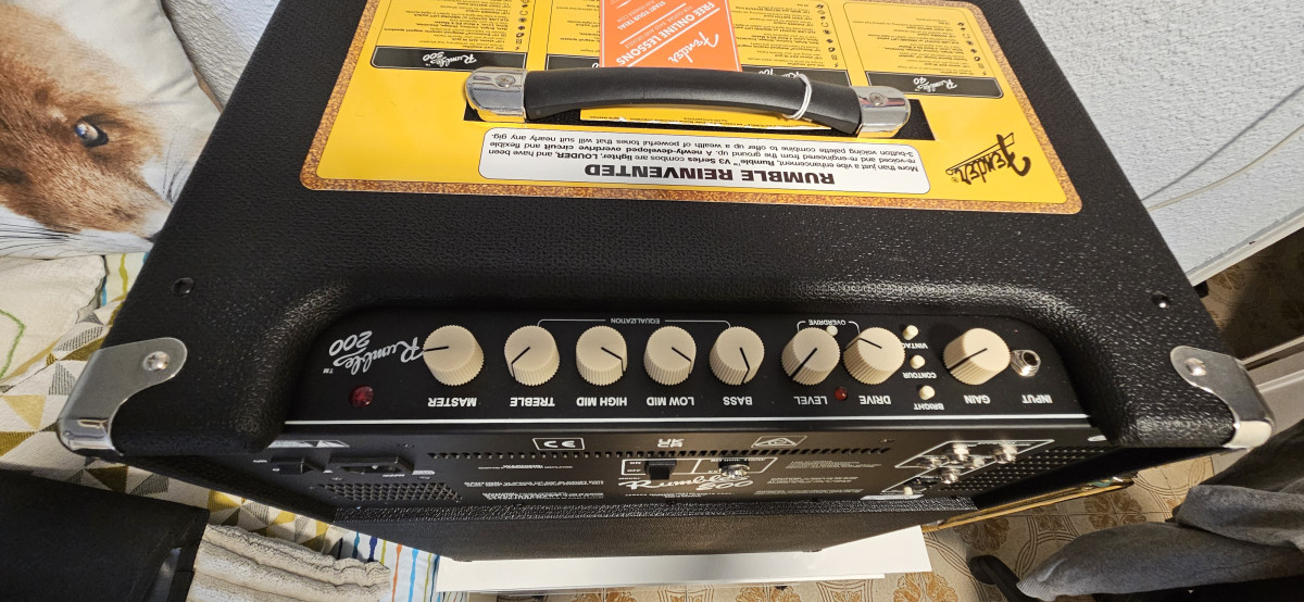 Amplificador de bajo FENDER RUMBLE 200 no usado. Estado estético como se muestra en la foto. Potencia 200 vatios. comprado en Enero 2025, aún en garantía con factura de compra. Se entrega en mano. Con la funda Fender incluida.