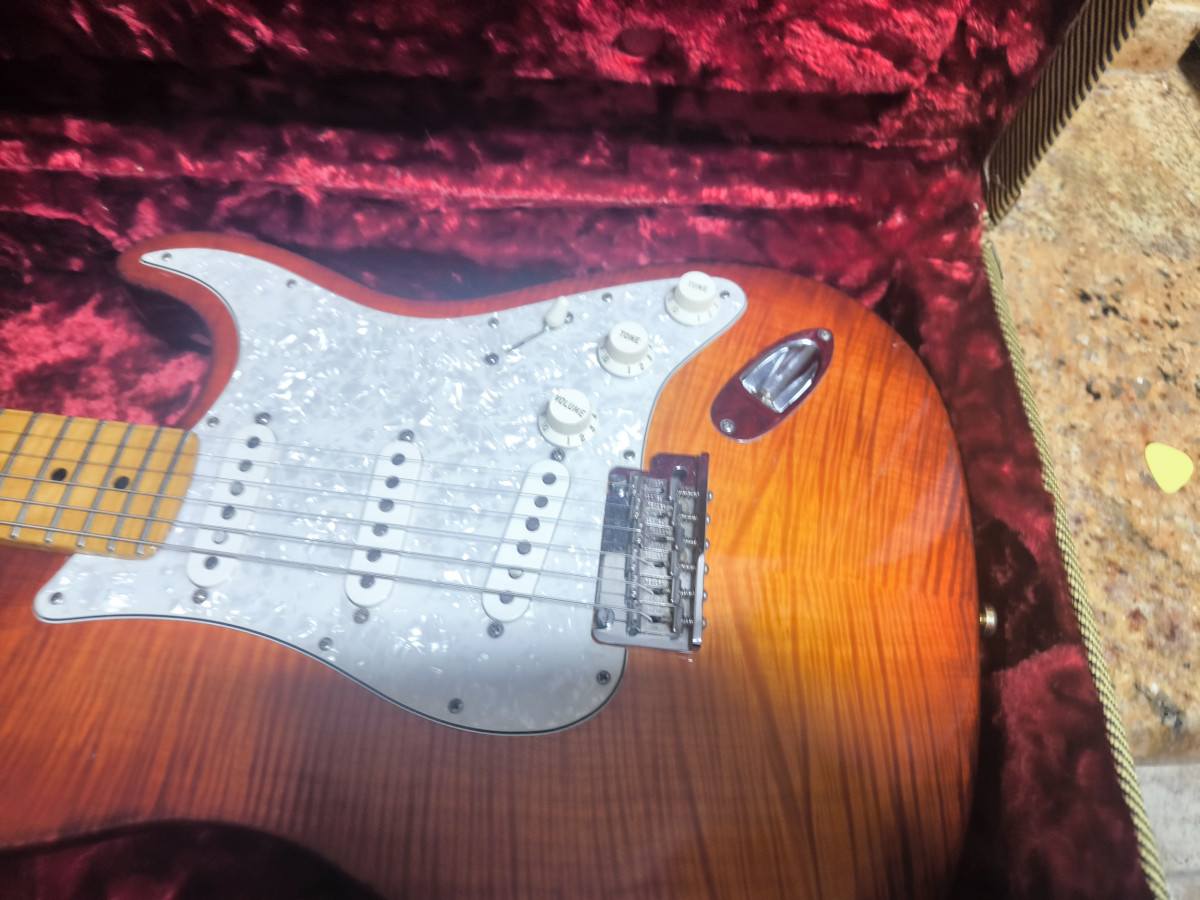 Guitarra con características de la custom shop, tiene algunas marcas en el cuerpo que detallo en las fotos, trastes al 90 por ciento, se le hizo un apantallado meticuloso por un profesional, trae pastillas custom shop Abigail Ybarra . El precio no es negociable y podría interesarme algún cambio por una lp gibson no studio ,posibilidad de entrega en Madrid.