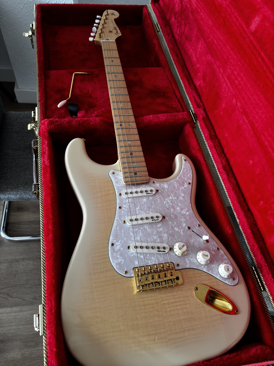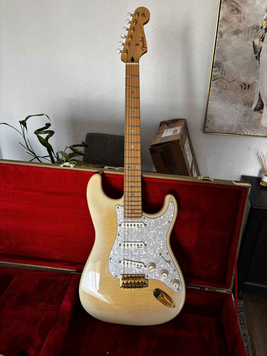 Fender signature, perfecto estado, pastillas dimarzio de serie, funda case vintage de calidad, herrajes dorados, muy buen estado
