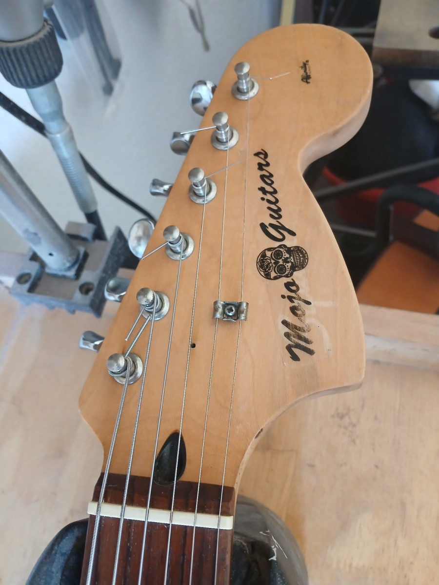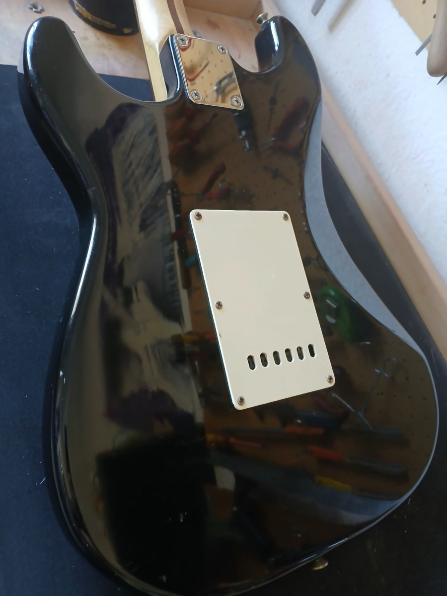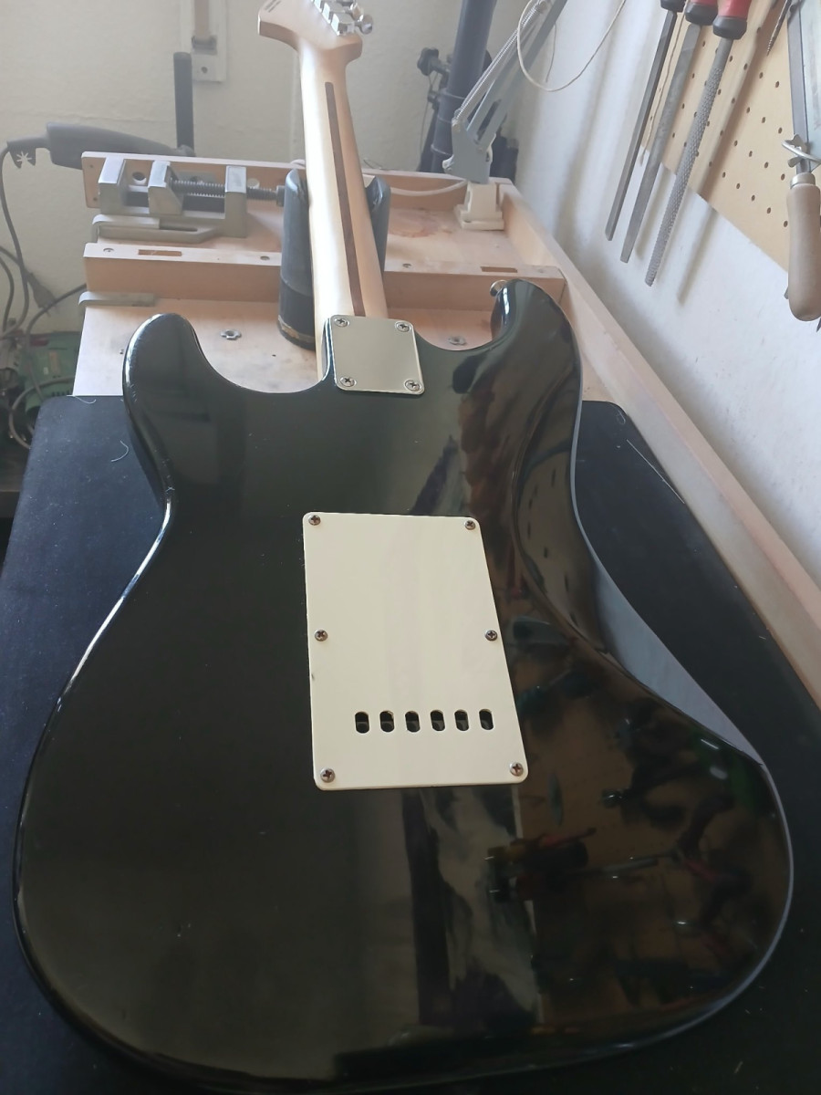 Pues hemos rescatado esta antigua Fender Squier Affinity y le hemos dado nueva vida, ajustadas con nuevas cuerdas Fender 010, nuevo golpeador de tres capas crema, ajuste del mástil, comodísimo con acción baja, limpieza de la electrónica, hidratación del mástil, ajuste completo de la guitarra para una ejecución perfecta y funda de regalo, ni cambios ni rebajas. Decir que los trastes como el mástil están perfectos.