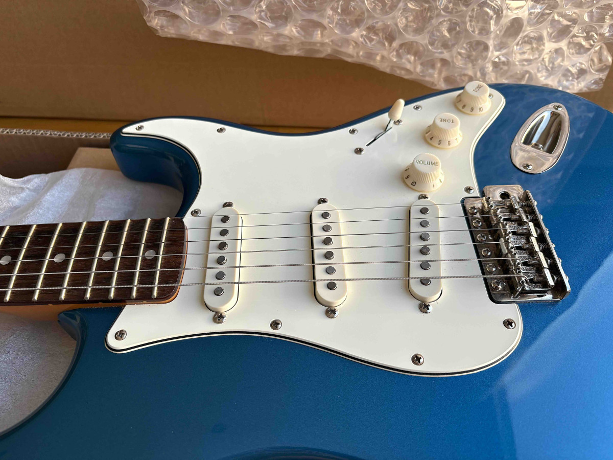 Guitarra eléctrica Fender Squier Stratocaster Classic Vibe 60s en color Lake Placid Blue.