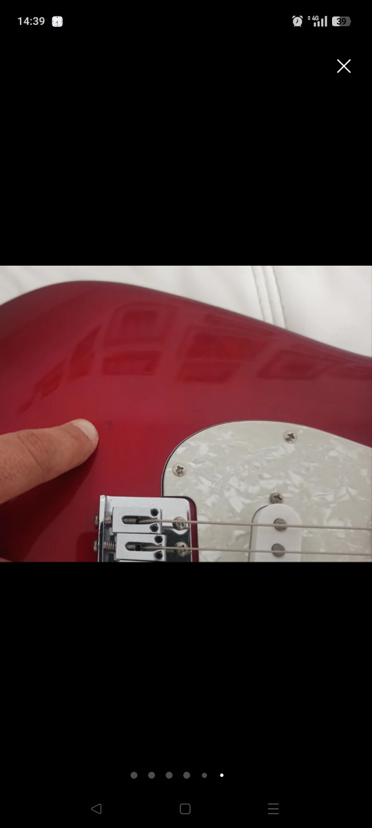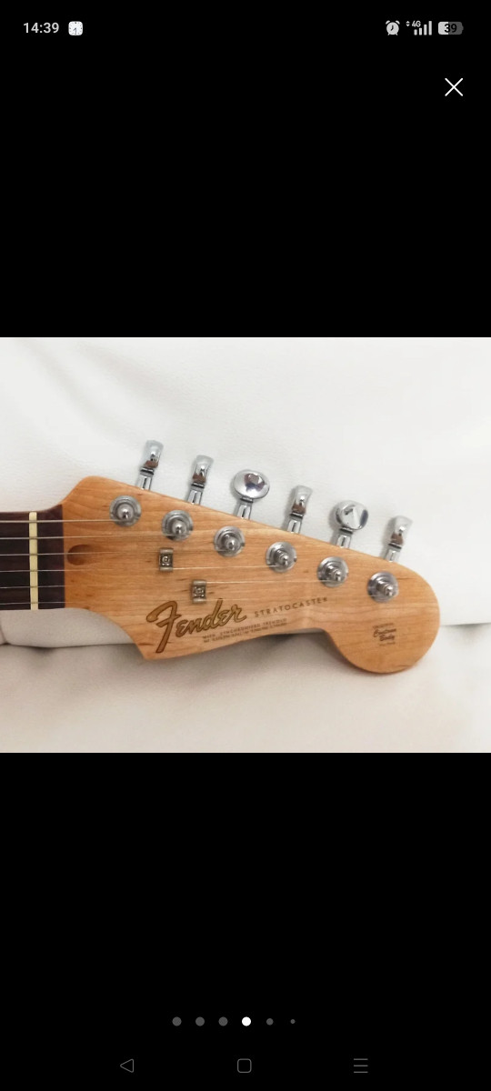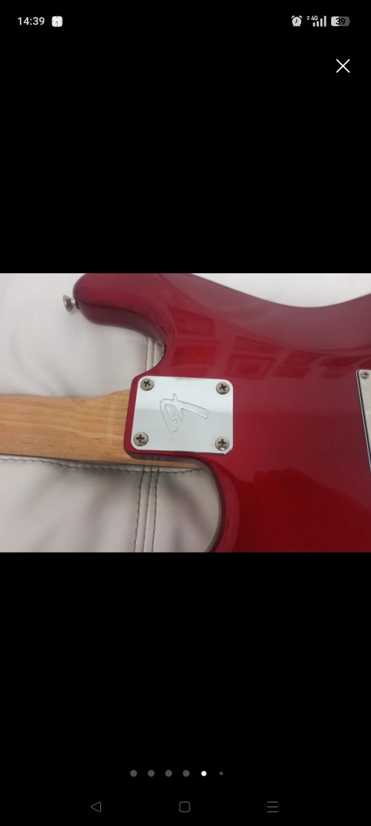 Cuerpo y puente de Squier Affinity hss del 2016 y mastil de una Squier Standar 1998 Korea. Pickguard nuevo blanco con pastillas SSS rebobinadas buscando un sonido tipo Fender strat 61/63 con calidad y sonido impresionantes.