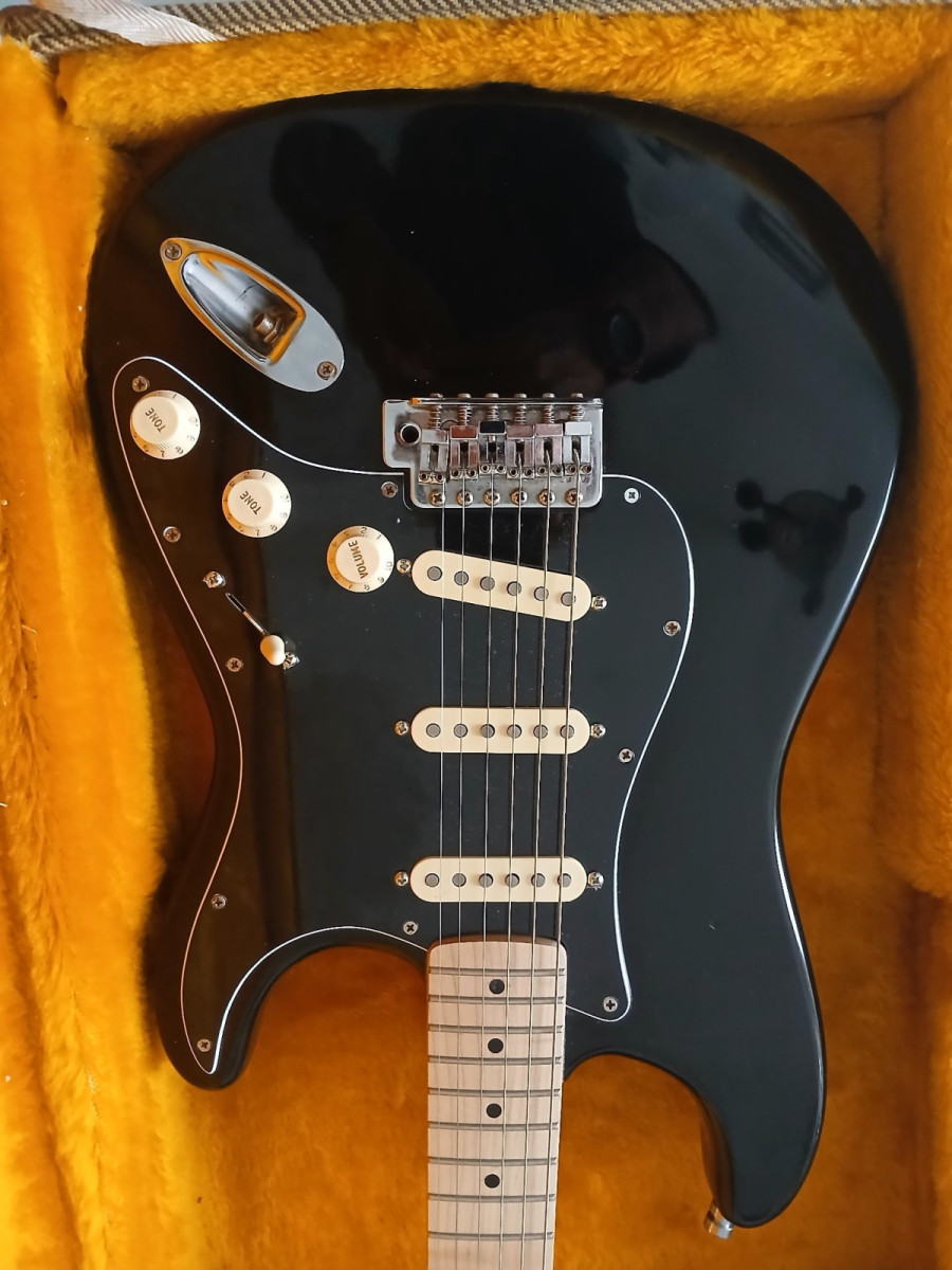 Pues eso una Strato 70 con sonido Jimi Vahugan total con kit completo de Tex mex, monta clavijeros Fender Standard en la pala tipo 70, va comodísima, ven a probarla y te la llevas.