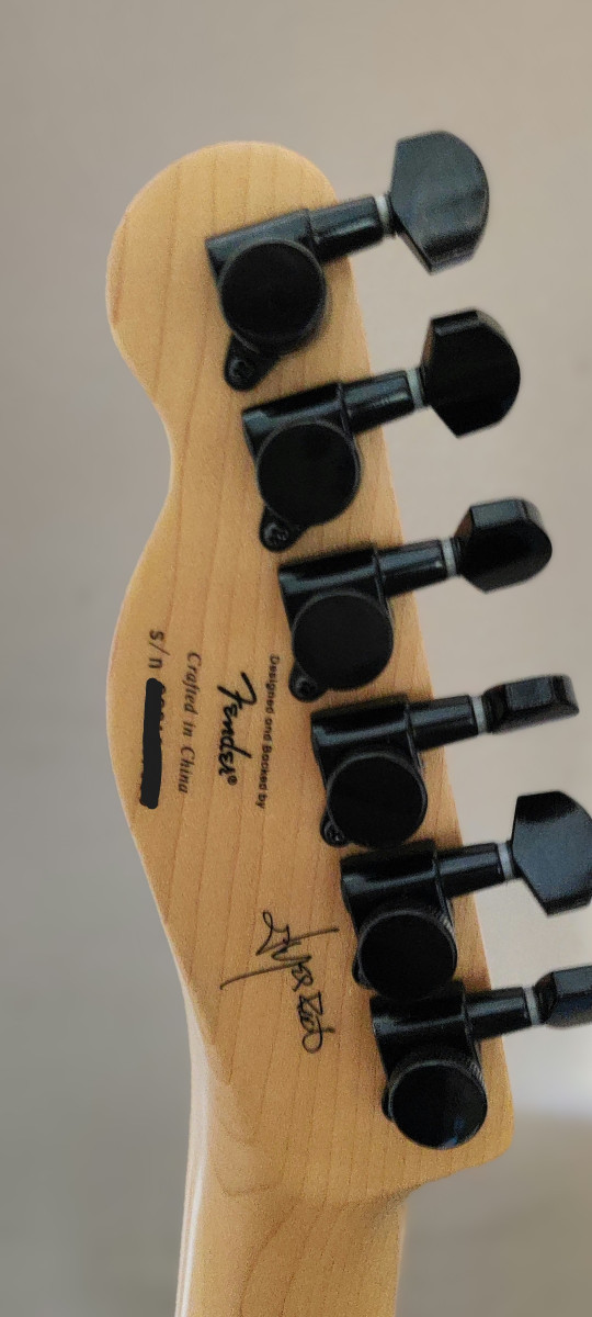 Vendo o cambio Fender Squier Telecaster Jim Root. Como mejoras le he cambiado las clavijas que traía por unas con bloqueo. Además, he sustituido las pastillas Squier que traía por unas Duncan Solar.
