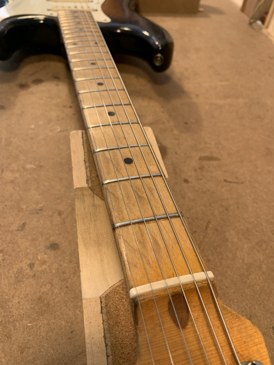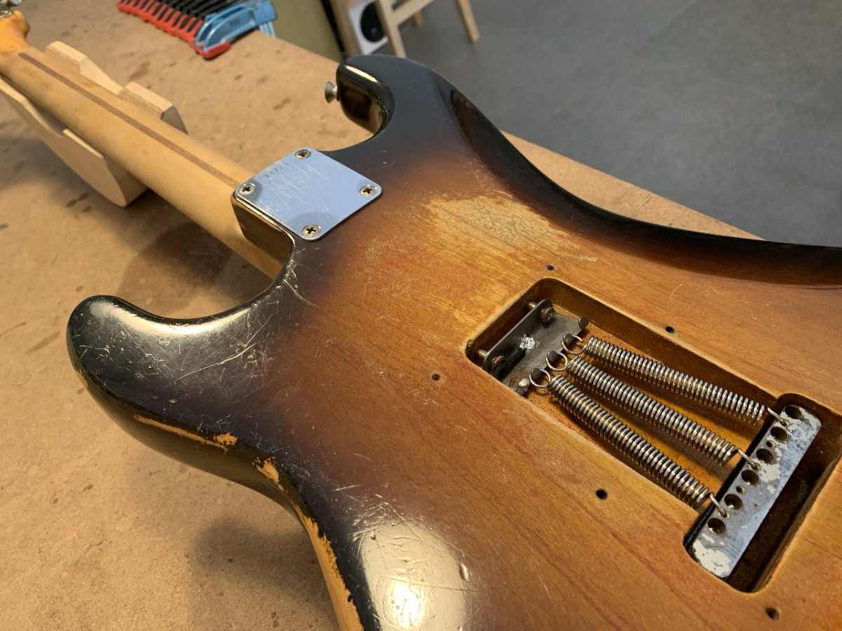 The finish has aged nicely though and looks very accurate as you can tell in the pics. Back of the neck is nicely worn after being oversprayed once.