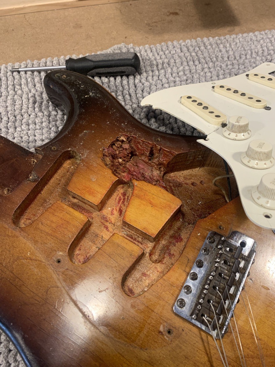 Beautiful wear on the finish. Refinished twice before it came to Sweden, first to red and then a 2 tone sunburst.