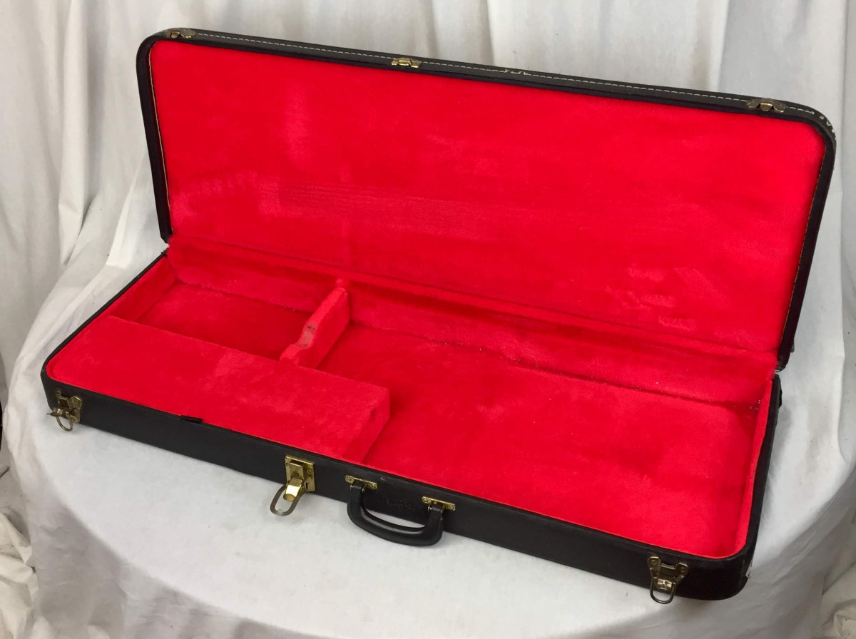 Only missing parts are the bridge cover, backplate and the height adjustment screws for 5 of the saddles. Comes with non original 70's hardcase."