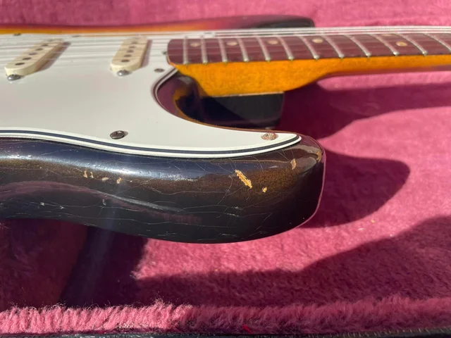 Mástil original de 1966. Rosewood muy oscuro. Retrasteado, trabajo muy bien realizado. Conserva sus afinadores "F" originales de la época. Es un mástil delgado, extremadamente suave, confortable y cómodo. Uno de los mejores mástiles que he tocado en mi vida.