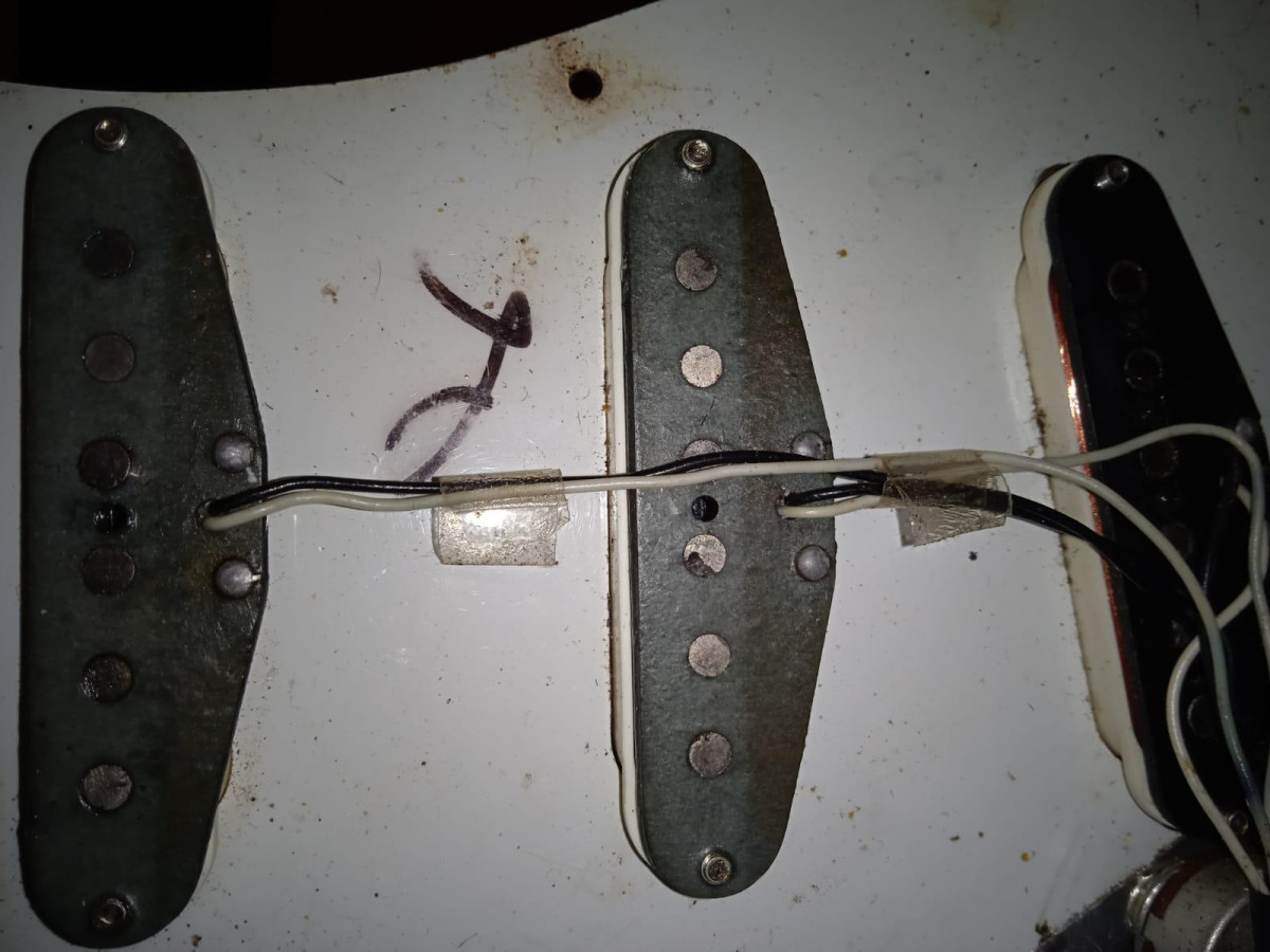 Pastillas: mástil y medio originales, fondo gris, sonido clásico Fender.