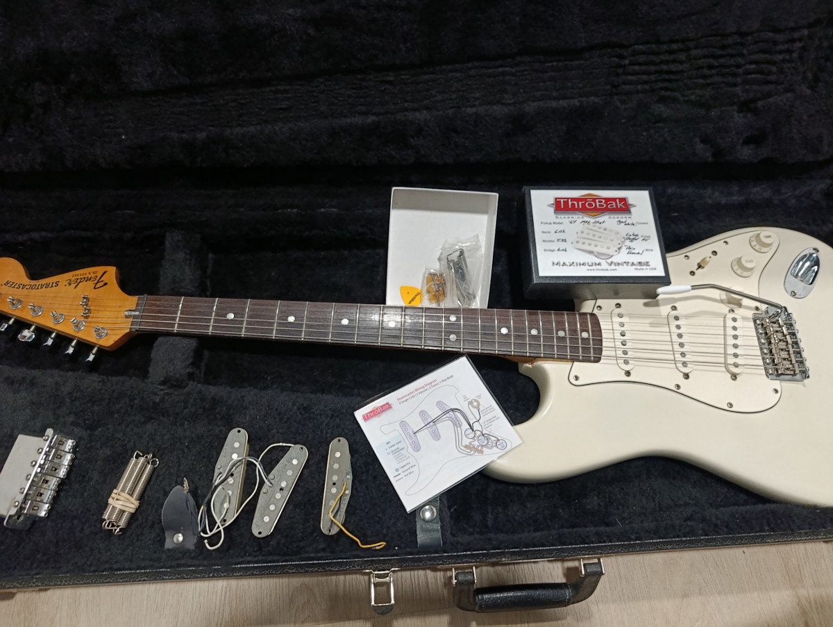 Ahora mismo tiene un juego de pastillas throback 64 y puente ABM 5050 S, que mejoran considerablemente la guitarra.