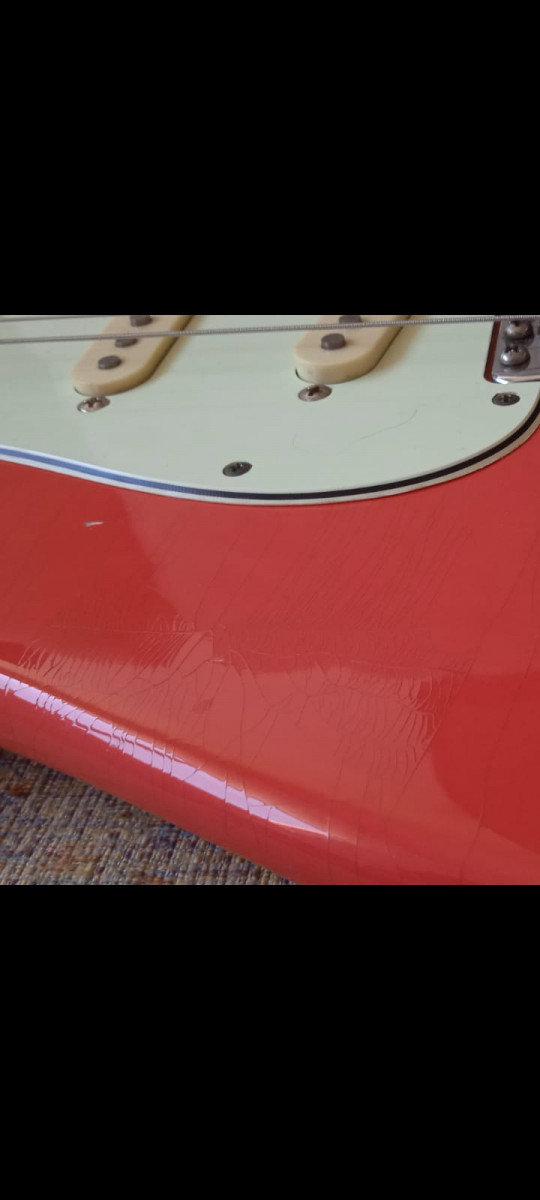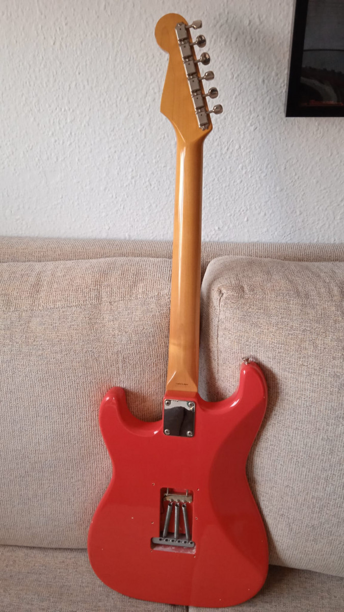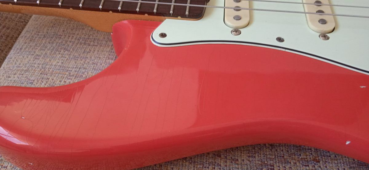 - Acabado del cuerpo en nitrocelulosa, fiesta red. El trabajo de decapado y pintura fue realizado por el gran TONYDEVIGO, de VEGARELICS. Las fotos no hacen justicia, es increíble, y lo que hace más dolorosa esta venta, sin duda. (esto cuesta una pasta).