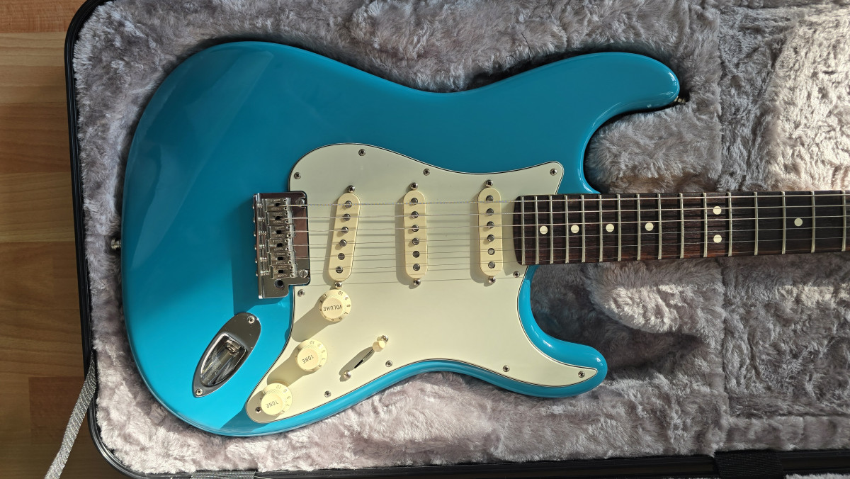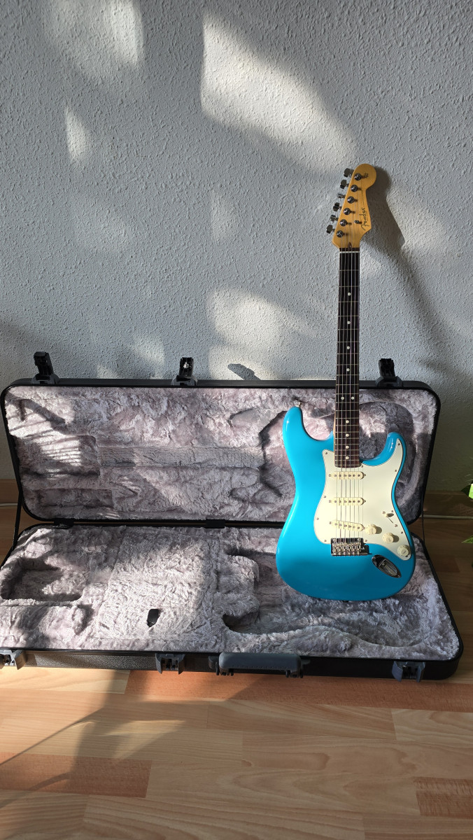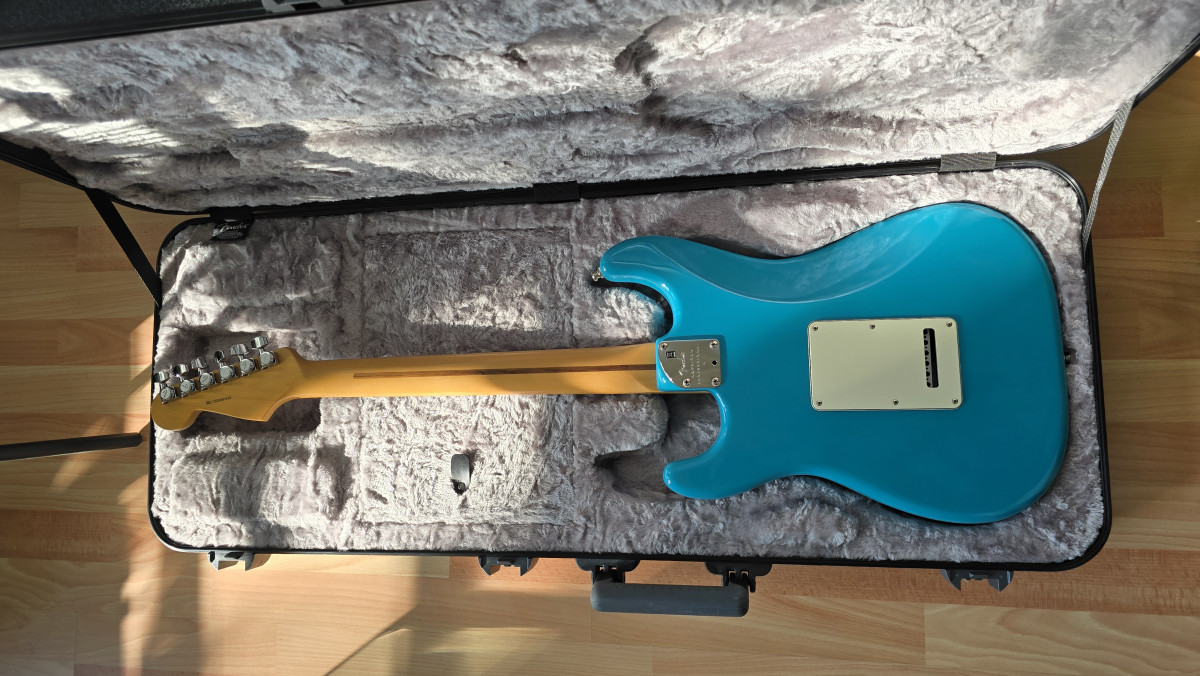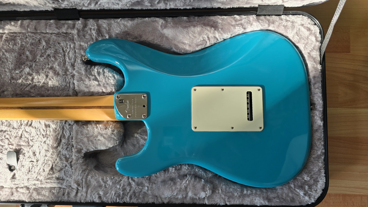 Preciosa guitarra Fender Stratocaster American Professional II en acabado azul. Se encuentra en perfecto estado estético.
