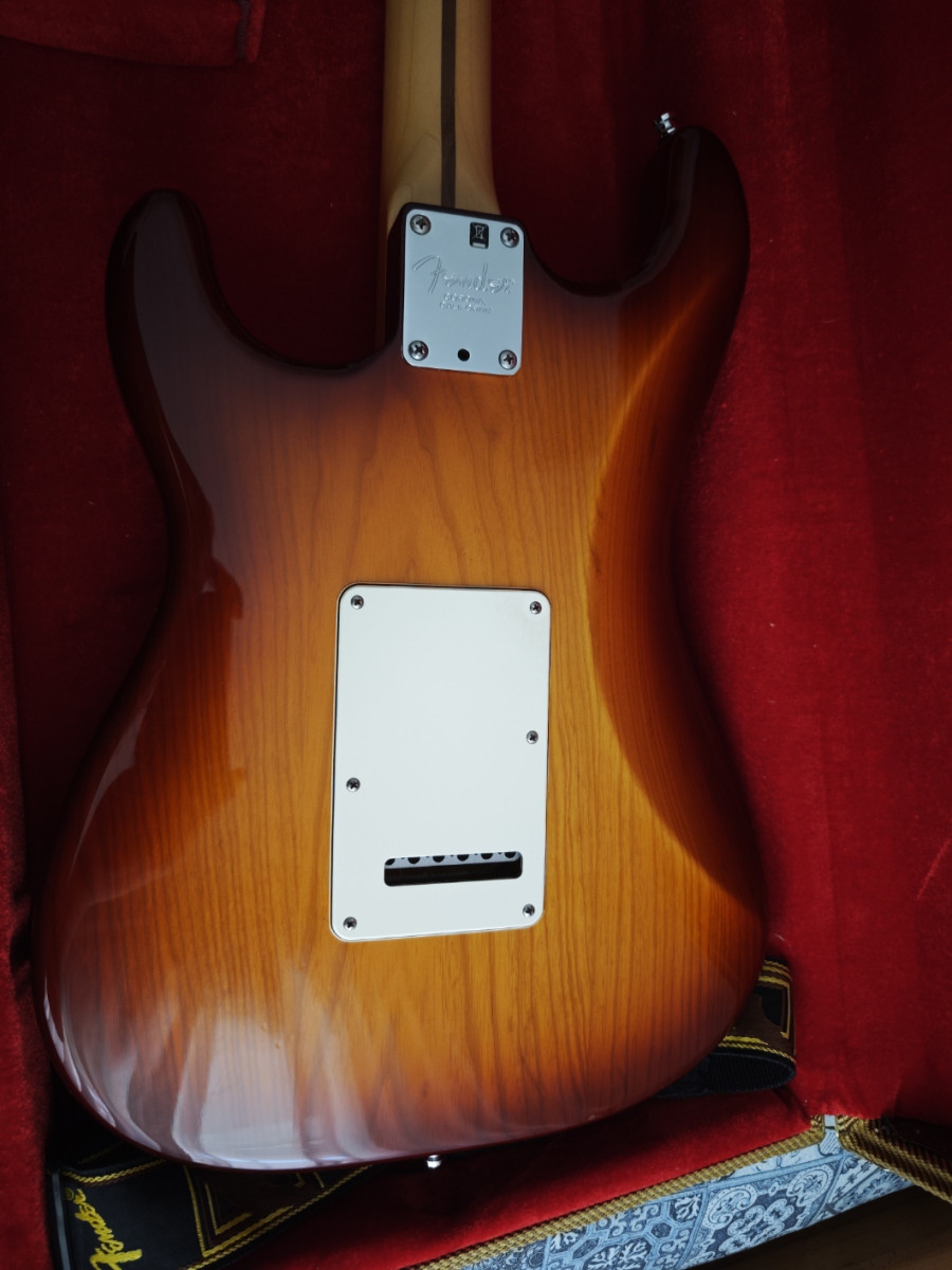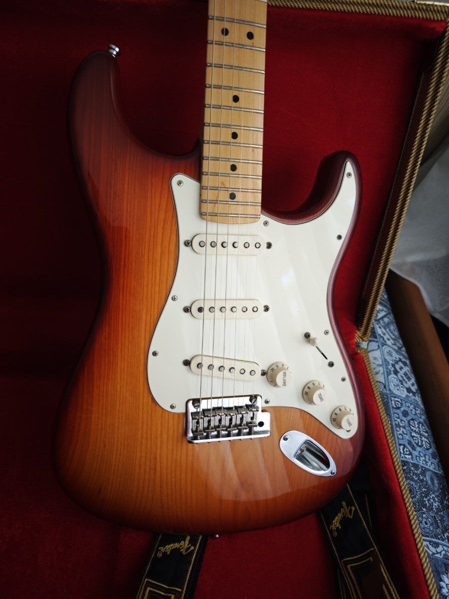 Hola, vendo mi Fender Stratocaster Americand Standard en acabado Sienna Sunburst (Ash), modelo del 2012.