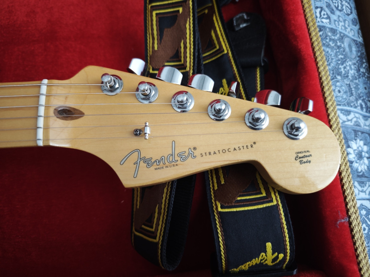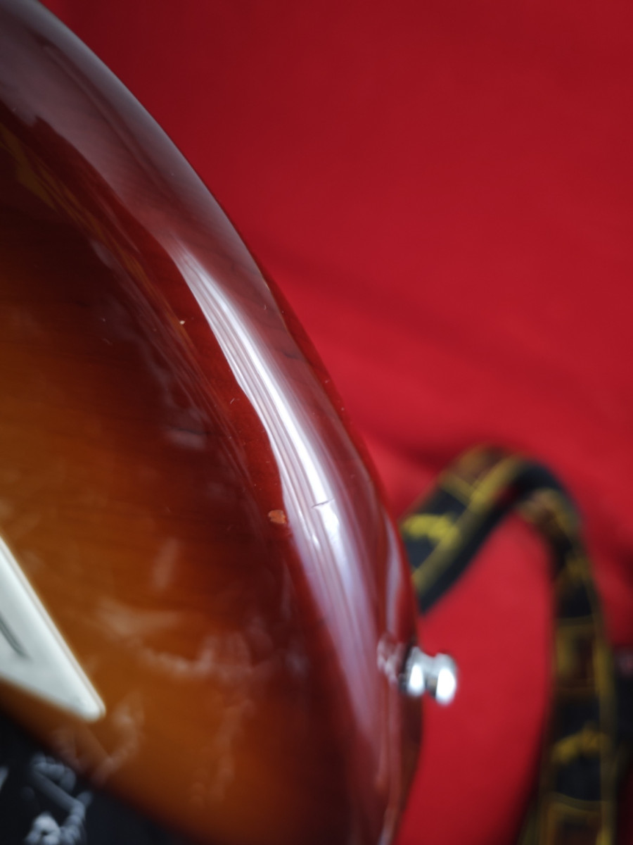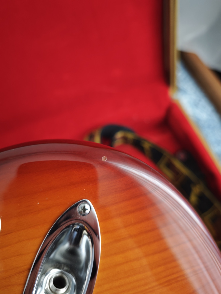 Tiene unos pequeños toques (dings) en el acabado, y los trastes tienen uso pero aun tienen recorrido, lo he documentado en las fotos. Es una gran guitarra y ya no hay muchas en fresno (ash). Incorpora "chuces" que se ven en la foto mas correa Fender (original) con straplocks de Schaller.
