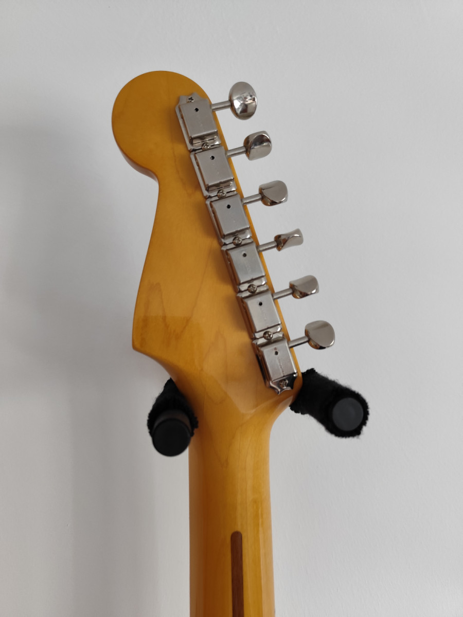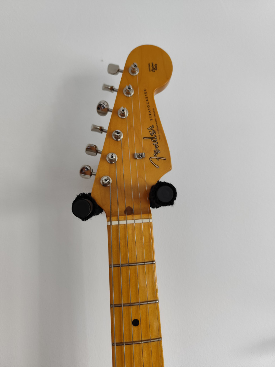 Vendo esta Fender Stratocaster American Vintage II 1957 Vintage Blonde, fabricada en 2022, con estuche original Fender G&G, documentación completa, palanca de trémolo, llaves y accesorios originales.