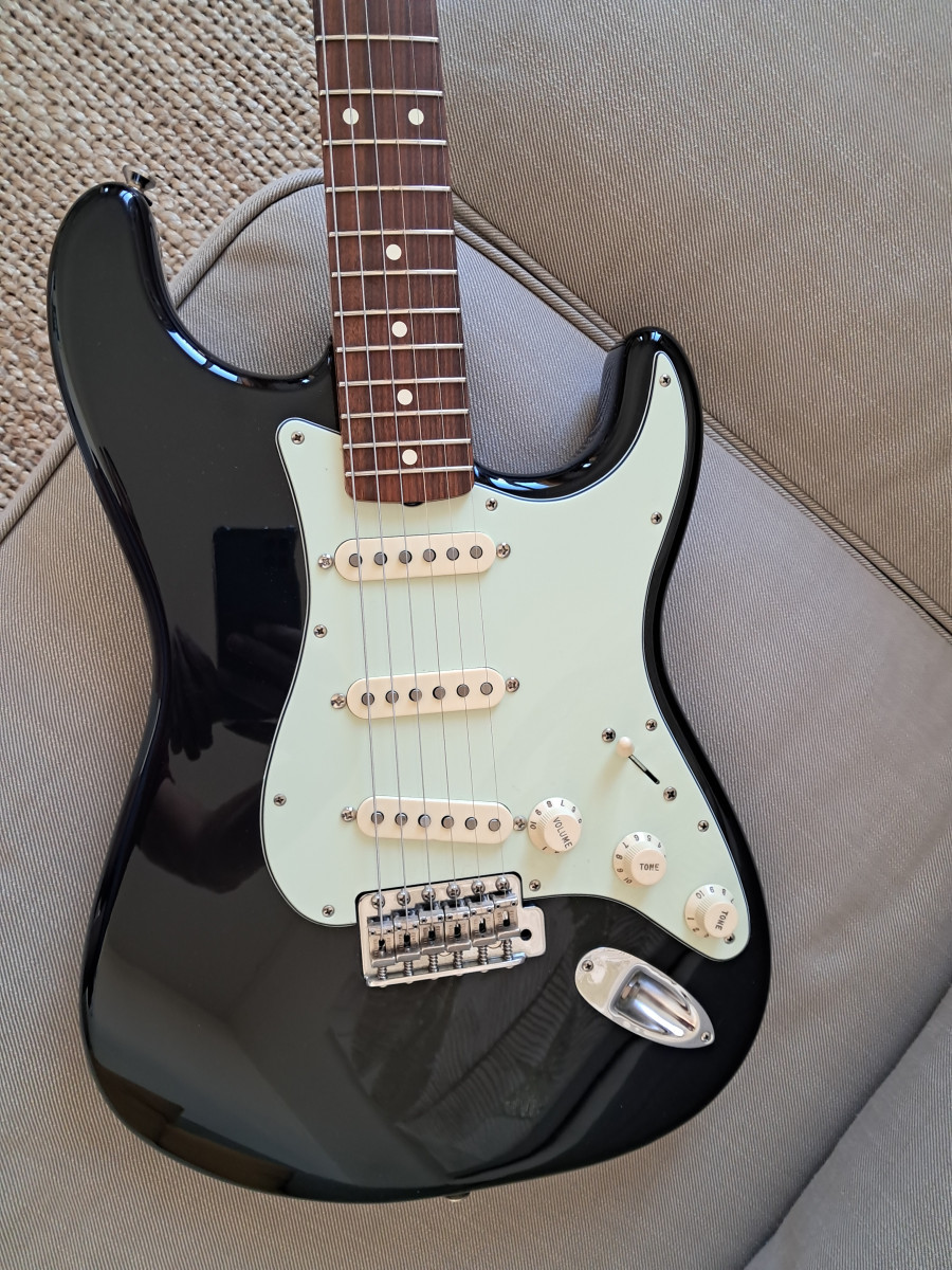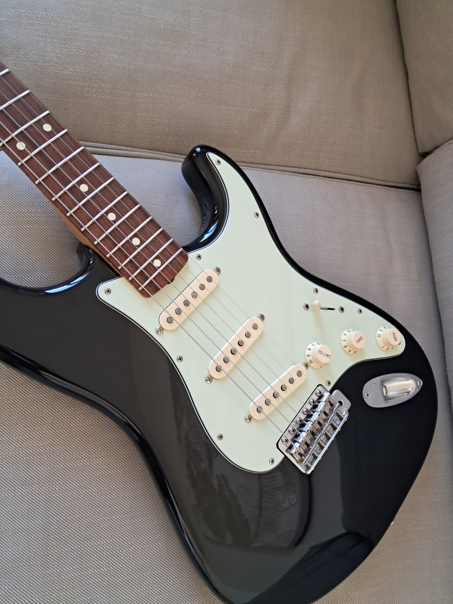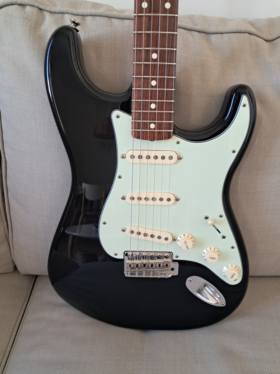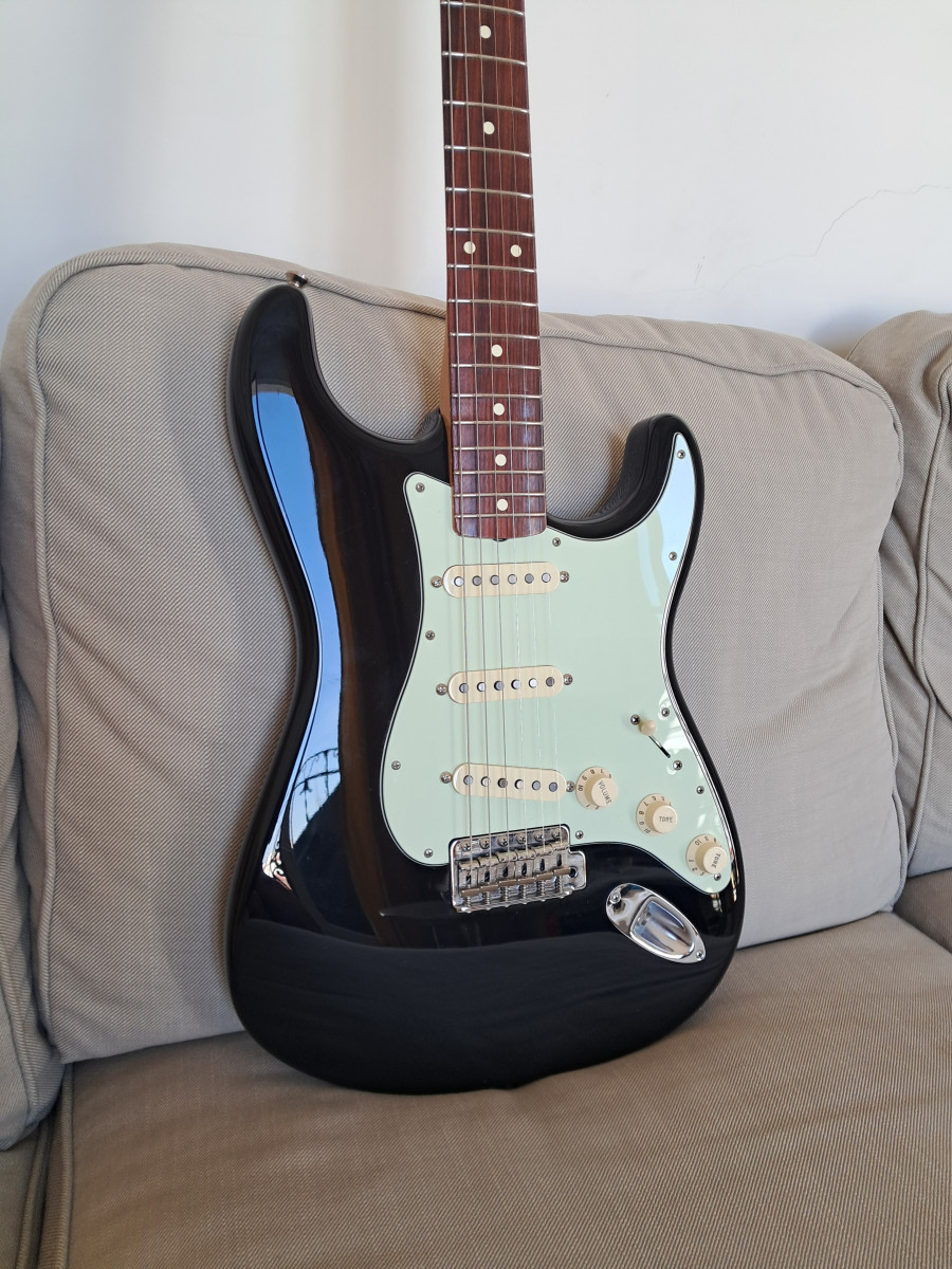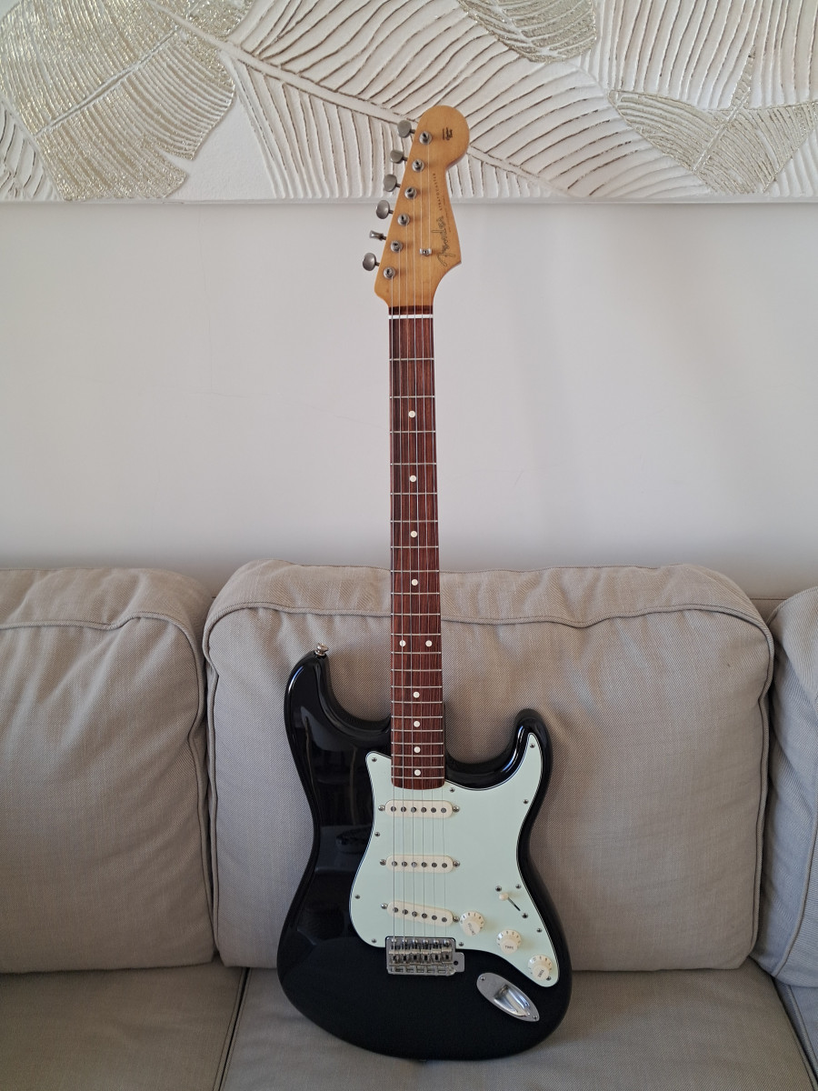 Preciosa guitarra Fender Stratocaster classic 60s, en color negro.