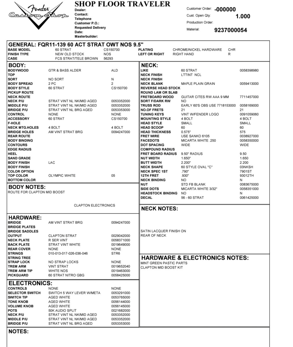 Tenía montado el circuito booster de Clapton, que se anuló, pero se entrega también, ahora va como una Strat clásica, un volumen 2 tonos.