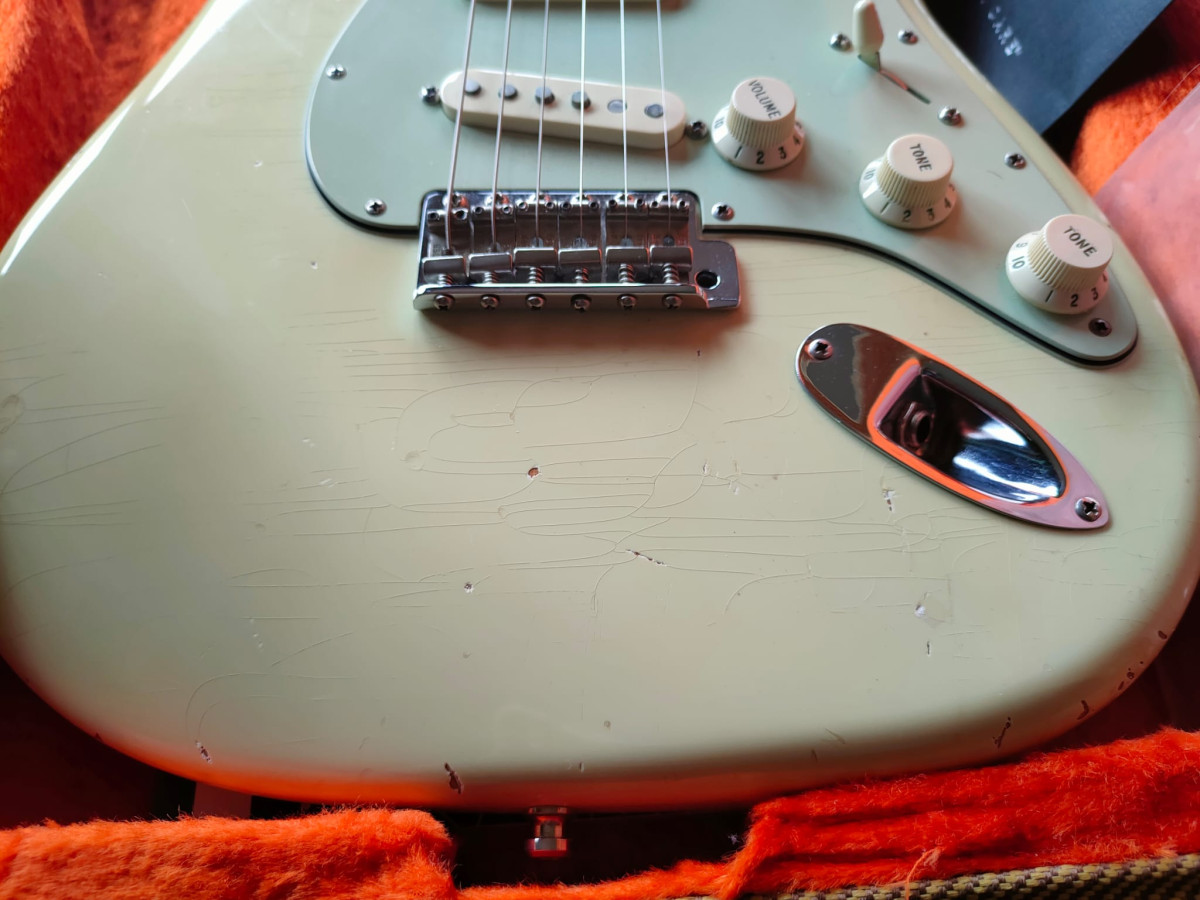 La compré hace poco aquí en el foro, resuena como un piano, es de 2012, Olímpic White, ya con ese color Vintage de la nitro y el crakelado que tanto nos gusta.