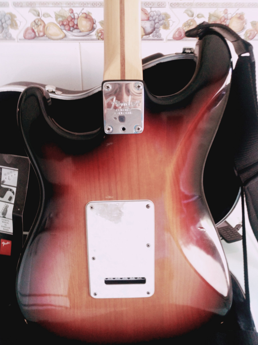Para apreciar que esta por encima de una standar americana, tiene a más, los siguientes detalles de serie, el cuerpo de aliso es más ligero, con detalles en los agarres de la bandolera para equilibrar mejor la guitarra, esta aislada con cobre, de serie, el golpeador es nacarado, y las pastillas aunque en series standar de algun año han coincidido con estas, (creo que solo ente el 2010-2012), tienen sonidos más ricos que las standar.