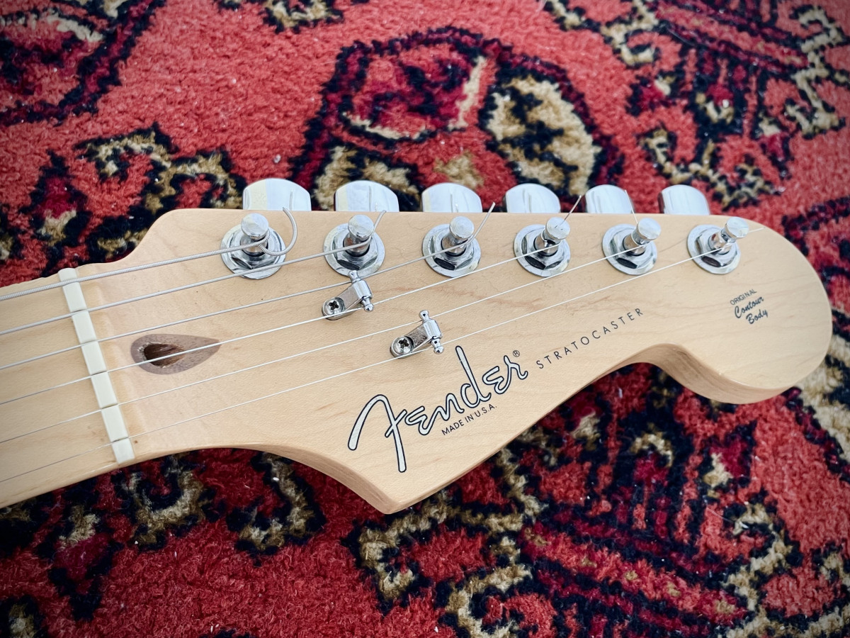 Es una Strat muy ligera, resonante y cómoda. Ideal para quienes buscan una Fender americana con carácter, calidad y una estética auténtica.