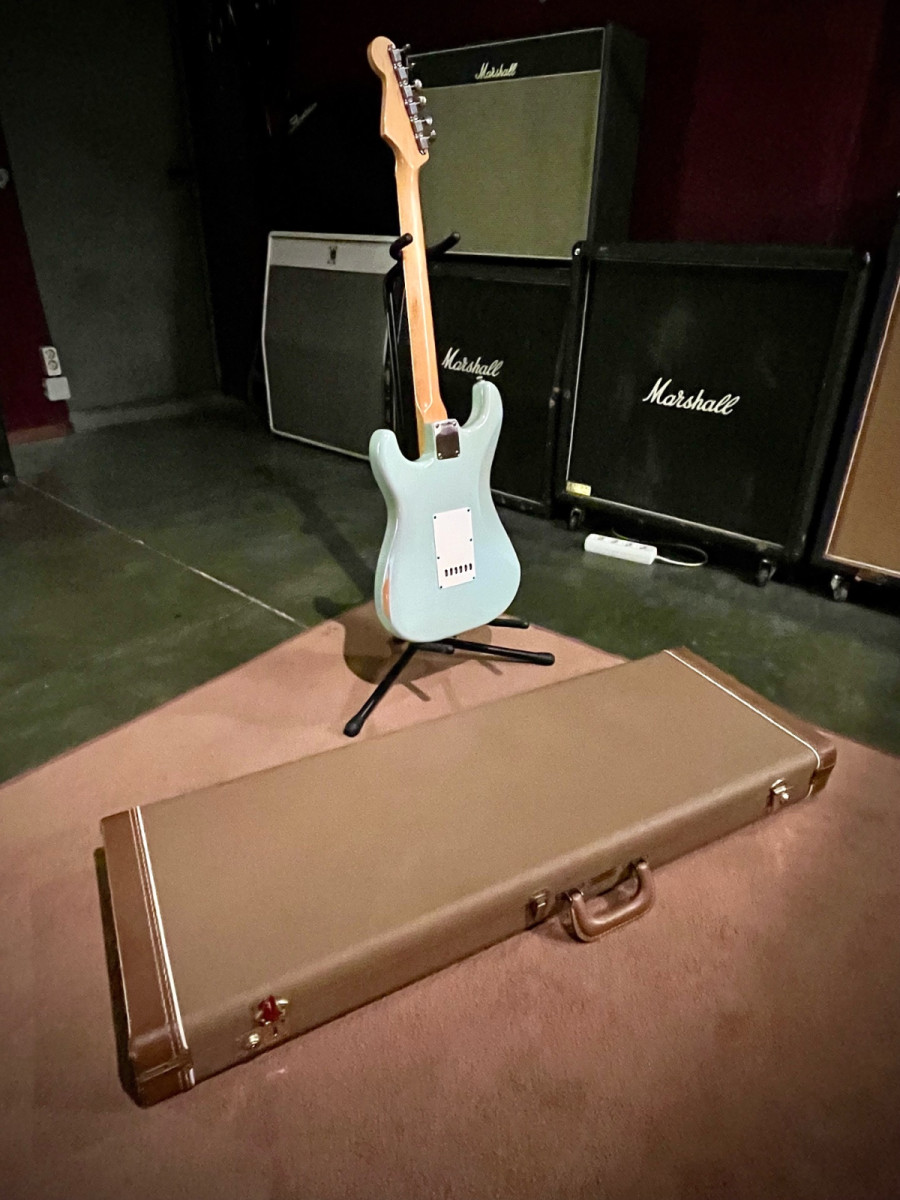 Fender American Vintage 62 de 2001. Edición limitada para Arbiter/Fender Europe de 250 unidades en thin skin Sonic Blue. Todo corroborado por mail de Fender con el numero de serie.