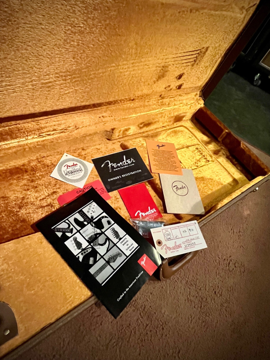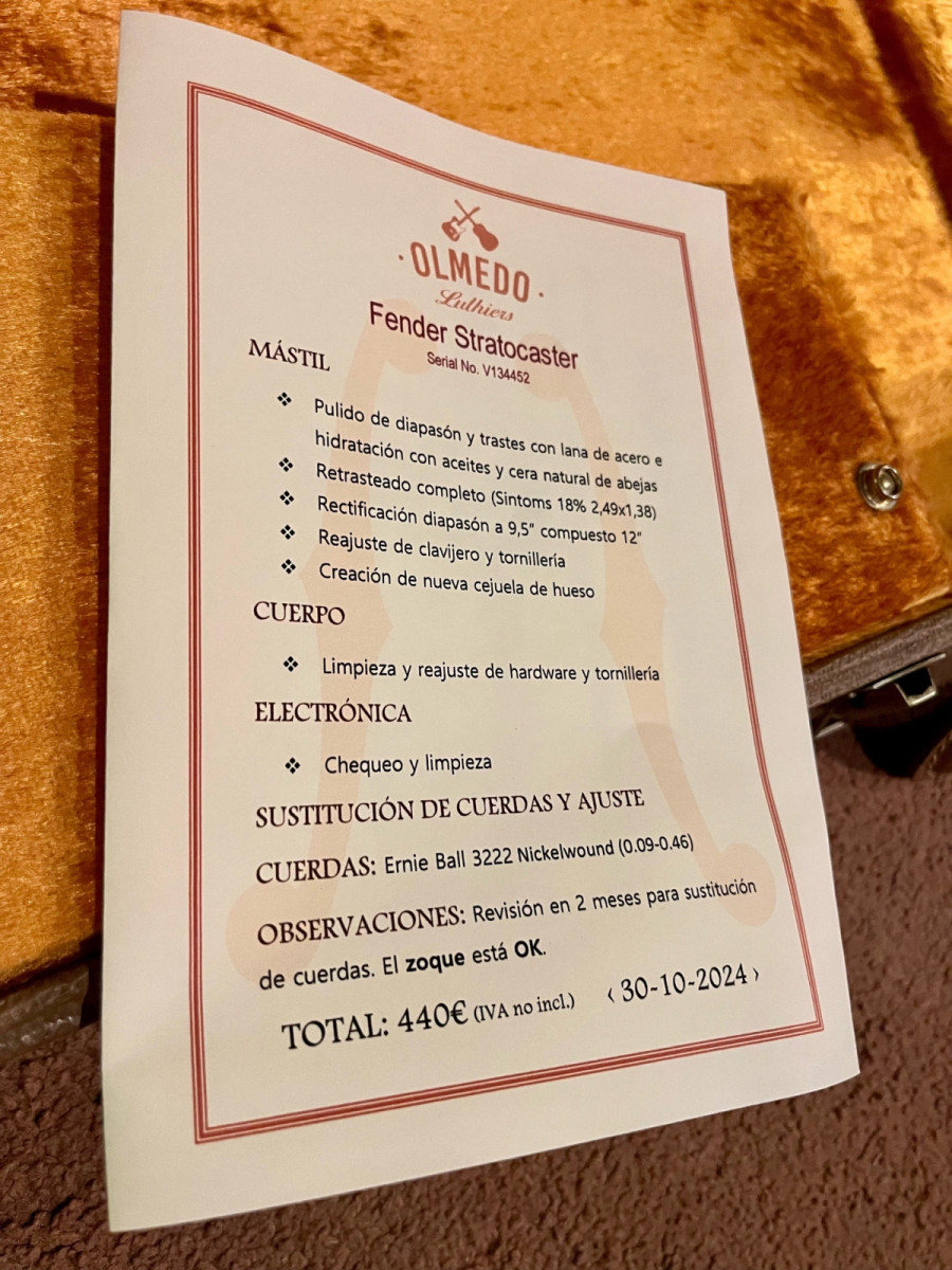 Incluye estuche original (uno de los cierres está así) y todos sus papeles y accesorios. La palanca del vibrato no la he fotografiado, pero la tengo en perfecto estado.