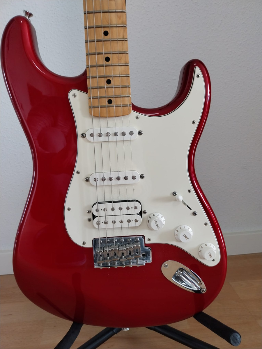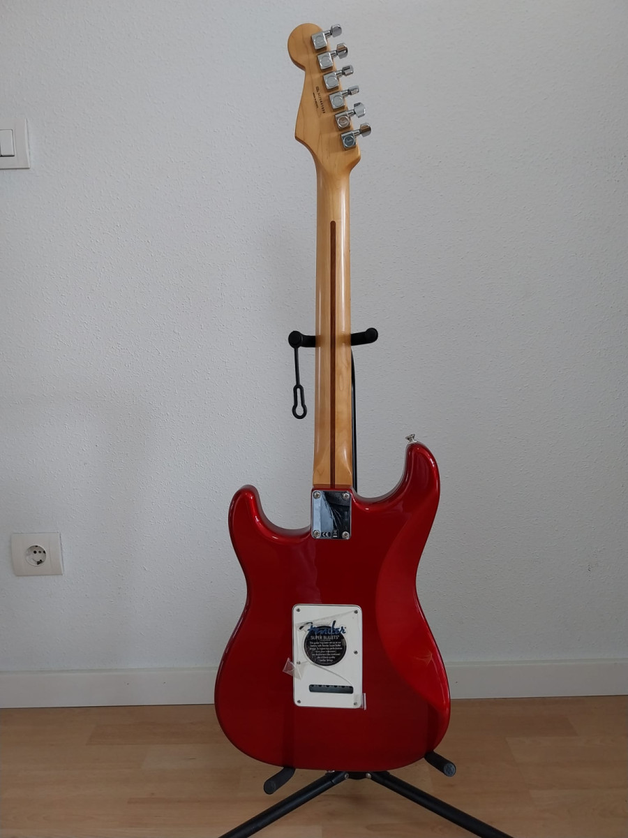 Guitarra Fender Stratocaster Standard Mexicana en acabado rojo. Está en excelente estado.