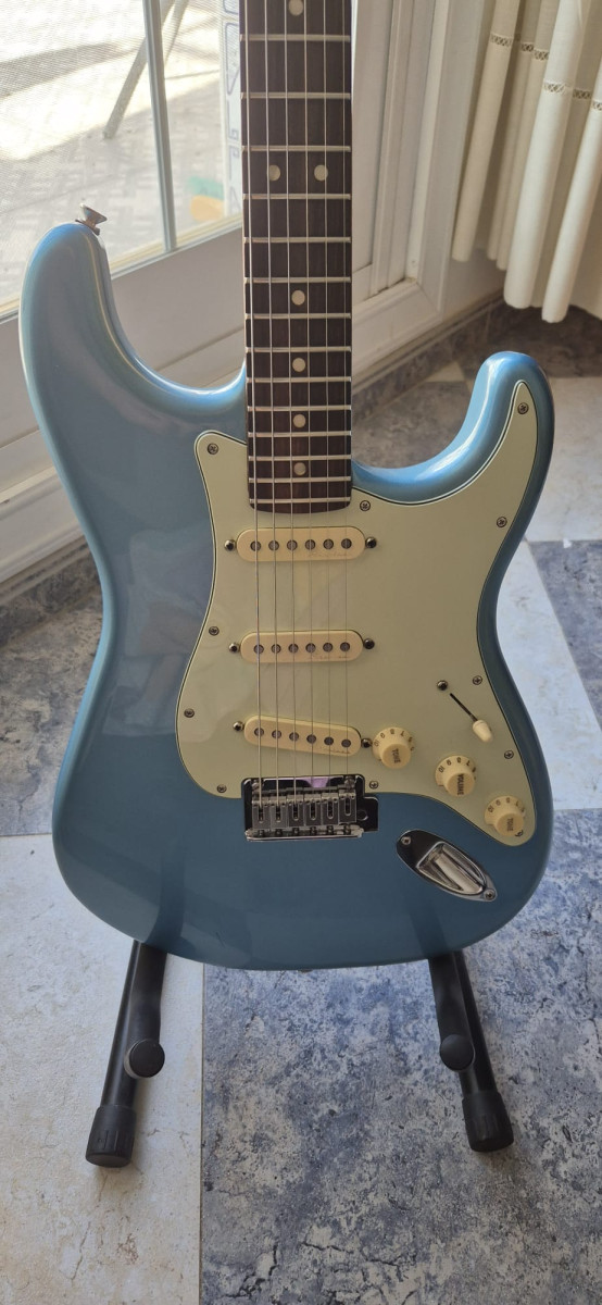 Está recién calibrada, suena y se siente estupendamente. La vendo porque tengo otras tres Stratocasters y no le estoy dando el uso que merece. Estoy abierto a envío, aunque en caso de enviarla el riesgo corre a cargo del comprador. Si el comprador así lo pide, puedo activar la compra protegida.