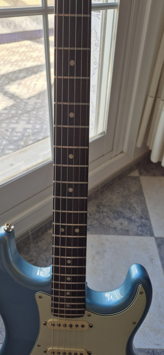 Vendo Fender Stratocaster Player Plus del año 2021 en acabado Opal Spark, con diapasón de pau ferro (muy muy oscuro, yo no sabría diferenciarlo de uno de palorrosa). La guitarra está en buen estado: funcionalmente va perfecta, aunque tiene algunas marcas de uso y algún pequeño desperfecto. Ya sabéis las características de esta serie: radio de 12", pastillas Noiseless (que suenan realmente bien, muy a strato). Trastes con mucha vida por delante.