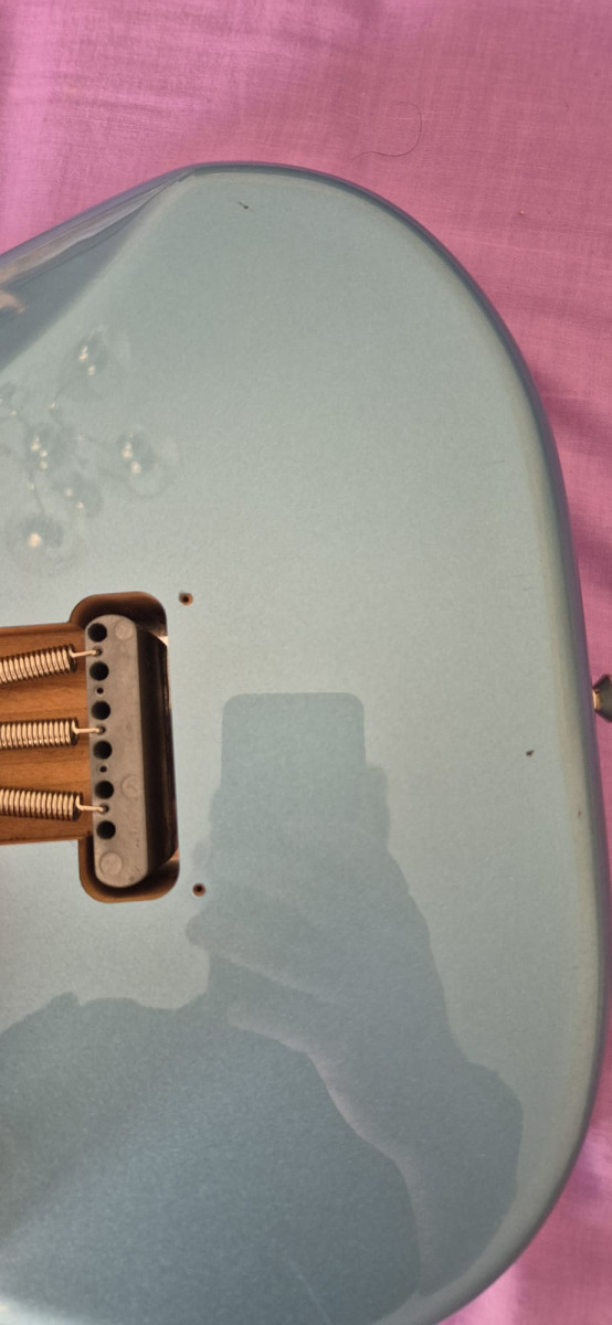 No tengo la tapa trasera ni la palanca del trémolo. Posibilidad de incluir un estuche rígido Gator de muy buena calidad, aunque con algún desperfecto menor.