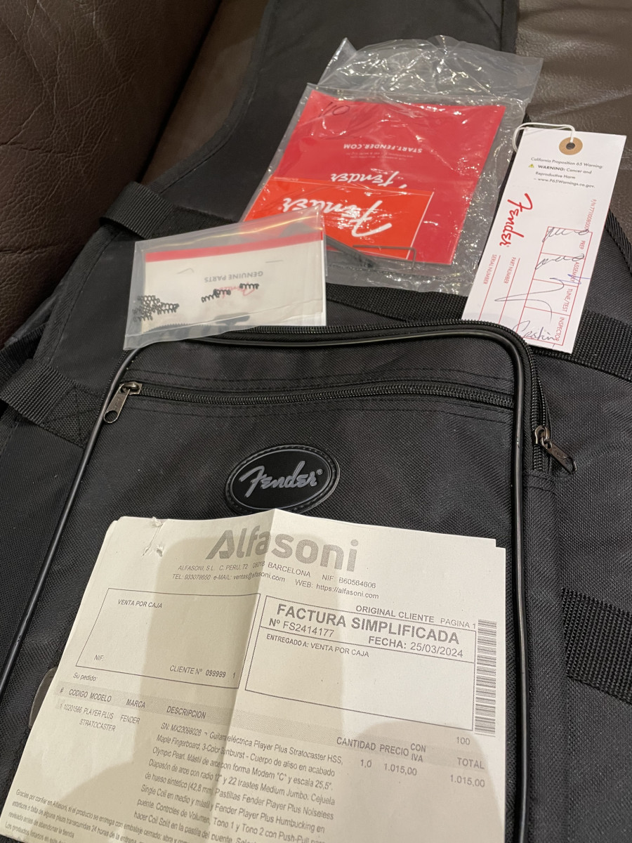 Incluyo en la venta todo el set, con funda Gigbag de luxe Fender, Etiquetas, llaves Allen, etiqueta de QC,…y regalo un paquete con muellecitos de recambio que van en la palanca de vibrato, que tienen la mala costumbre de perderse cuando desenroscamos la palanca.