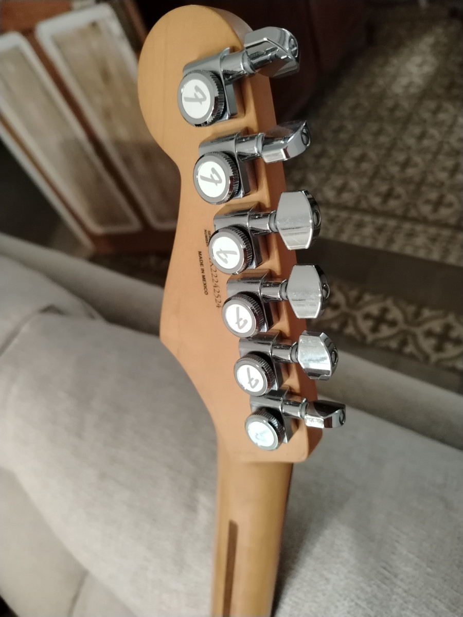 Vendo fender stratocaster player plus del 2024 con poquísimo uso y en perfecto estado, nada destacable a nivel cosmético y los trastes en perfecto estado, sin desgaste, con todas las cosas que traía palanca, llaves, papeles y funda blanda muy apaña.