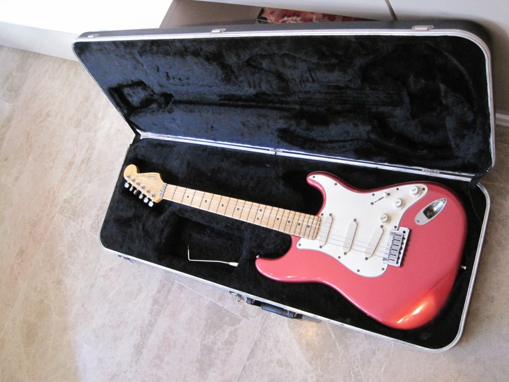 Fender strato plus americana , made in U. S. A. Totalmente original de fábrica, sin ninguna modificación. Strat del año 1991, vintage, 25 años. . . Pastillas Lace Sensor gold, clavijero con bloqueo, cejuela roller nut, mástil y diapasón en maple (arce), cuerpo de fresno, puente de dos puntos, selector de 5 posiciones, 1 volumen, 1 tono, 1 tono TBX, color Candy Apple Red, preciosa. Incluyo estuche rígido original Fender(está currado pero hace su función) y palanca de vibrato. No me interesan cambios, gracias.