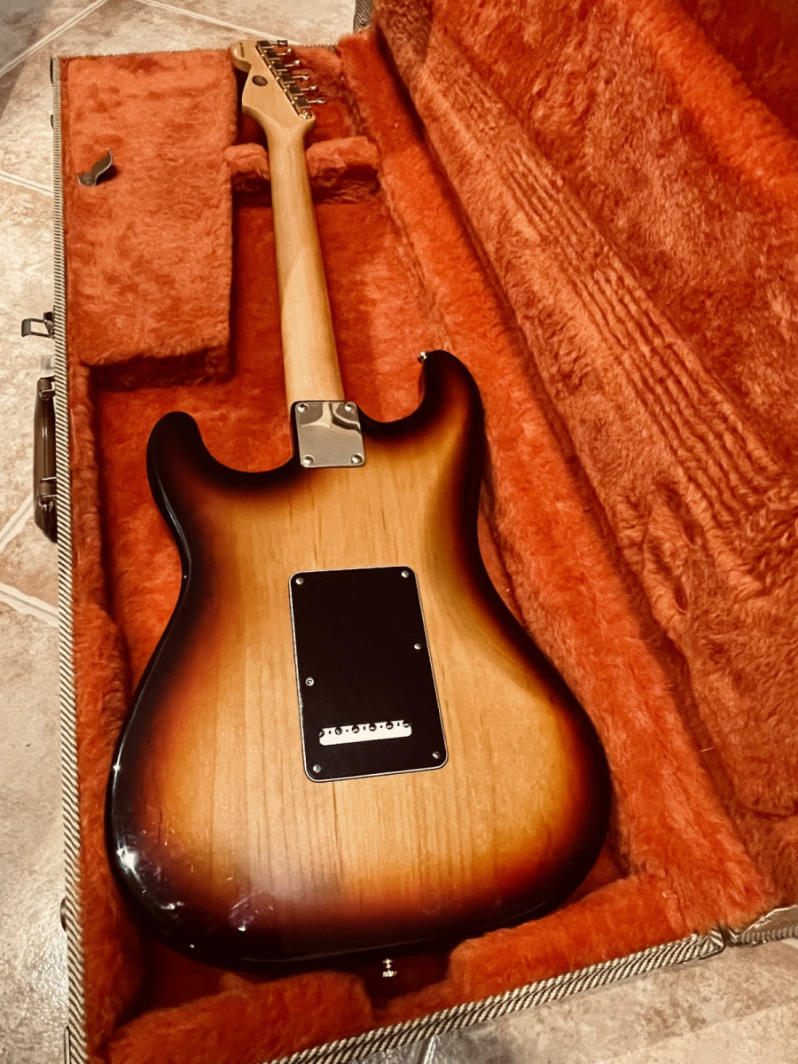 Mucha información en la web de esta guitarra, como detalle destacar el buen estado en que está a pesar de los años. De 1995 la mejor época para estas guitarras, de las primeras series, incluido estuche fender original.