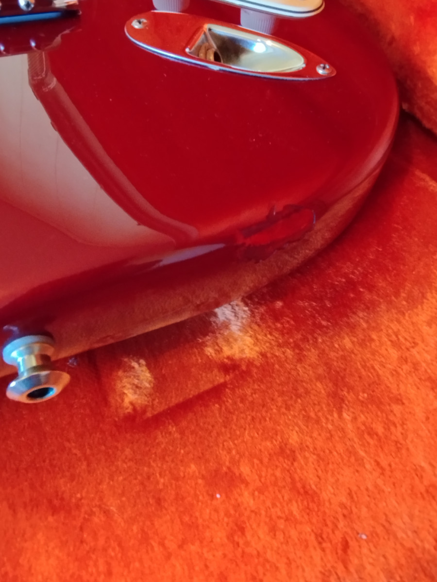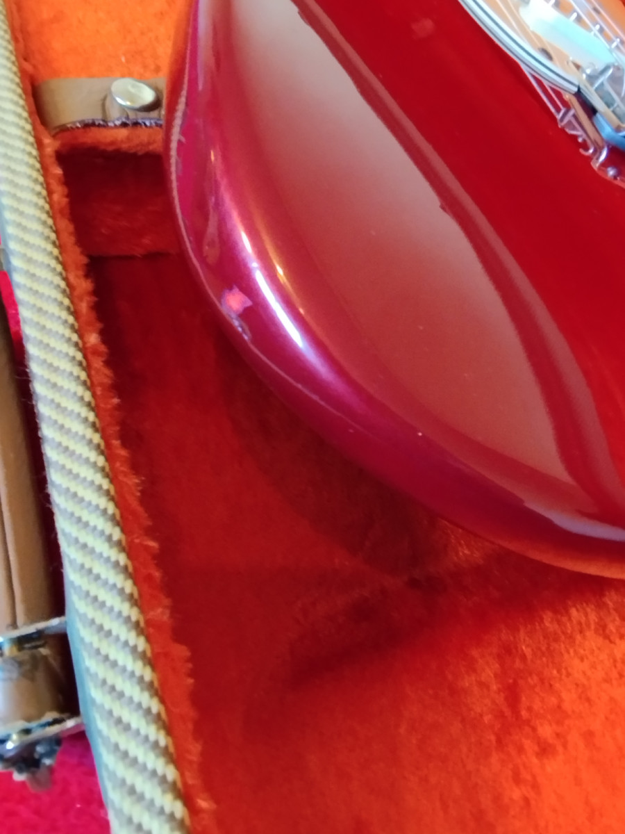 Vendo este guitarrón que me ha acompañado en estos últimos años por los escenarios con Saratoga . En el rock Imperium de 2023 por ejemplo y muchos más. Color Candy Apple de 2003.. De cuando se hacían de otra manera . Pastillas Di Marzio de serie y conmutador de tres posiciones. Con su estuche original. Tiene un golpe que provocó la falta de pintura que no afecta para nada en el sonido y no se ve de frente. Otro también muy pequeño que muestro en las fotos . Ya la compré así.