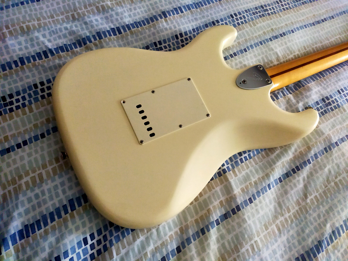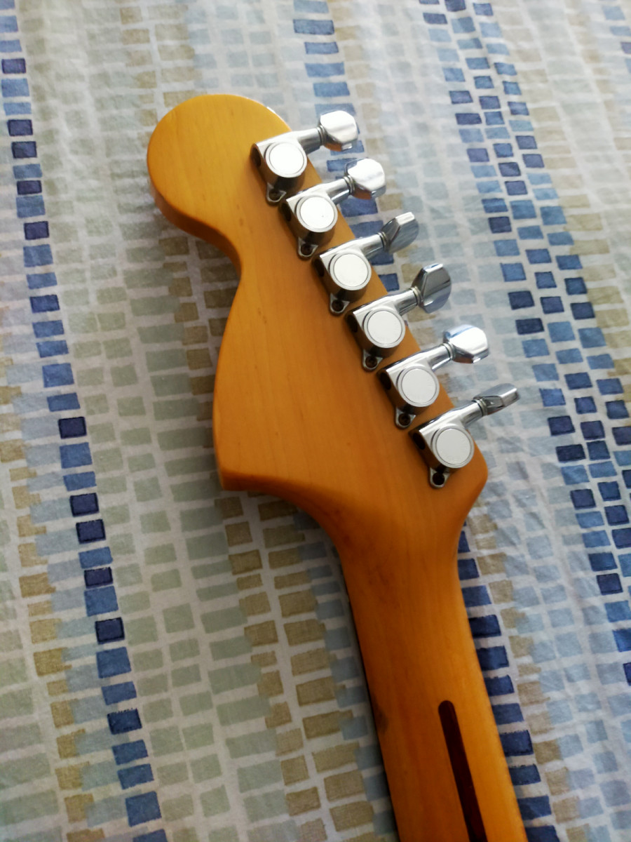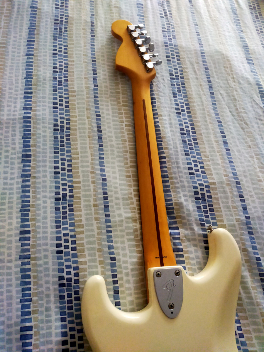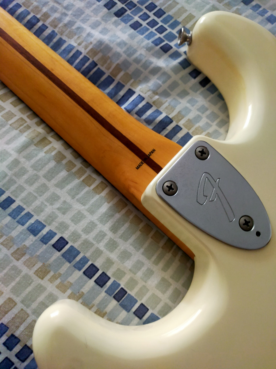 Fender stratocaster made in japan de los 80. Serie E de las mas prestigiosas salida de la factoría japonesa. Pastillas quarter pound en puente y mastil y hot rail en el medio. Estuche de la epoca que encaja la forma al milímetro. Para unico cambio voy tras una Sg no faded no negra.