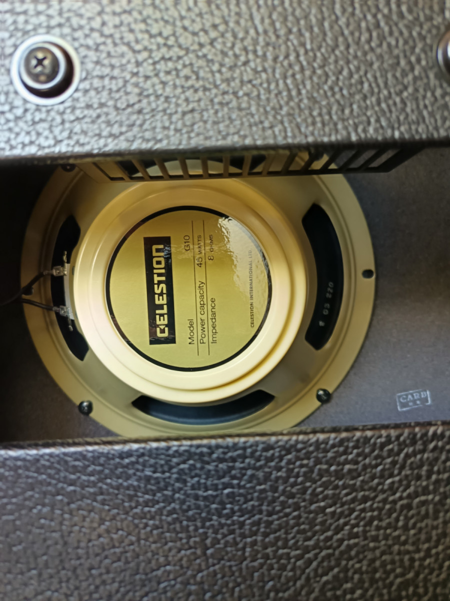 Ampli en perfecto estado con altavoz Celestion Creamback 10" 8 ohm. Tiene su footswitch para cambio de canal. Válvulas originales cambiadas por unas Electro Harmonix (poco uso). Entrego las originales (todavía tienen uso). Entrego también el altavoz original (muy fácil de cambiar).