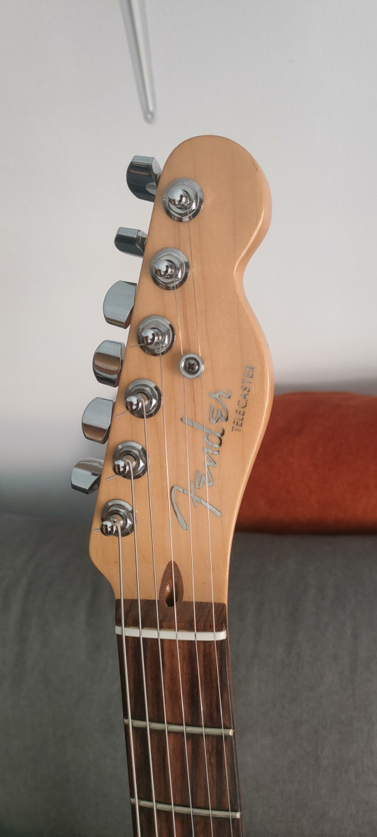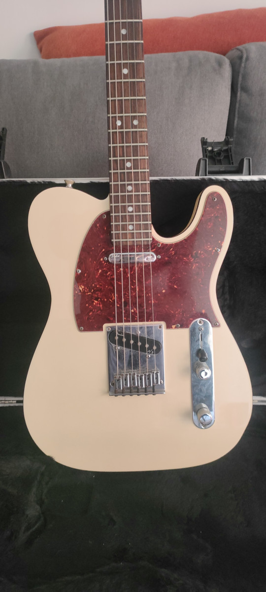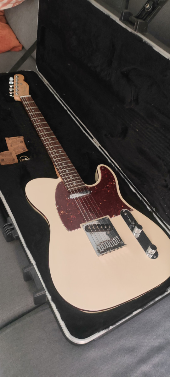 Toda original, con algún ding de pintura propia de los conciertos que he dado con ella pero en perfecto estado, funcionando como un cañón. Con sus pastillas Noiseless N3 Single-Coil Tele, su sistema S1 para colocar las pastillas en modo Humbucker, trastes médium jumbo y un radio de mástil 9 - 14 que es la cosa más cómoda que he tocado nunca. Afinadores de bloqueo para una afinación sin riesgo, aguanta horas dando cera y es estable 100%. Vendo con estuche rígido, podría enviar pero a coste y riesgo del comprador.