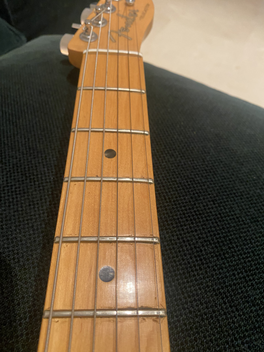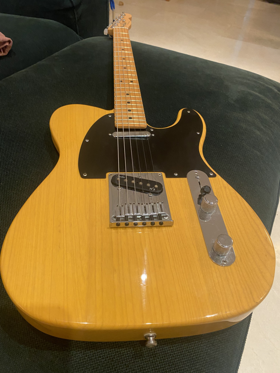 Fender Telecaster Deluxe Made in USA, en acabado natural con mástil de arce. Guitarra sólida, muy cómoda y con un carácter sonoro versátil: desde limpios brillantes y definidos hasta sonidos con más cuerpo y pegada. Mástil rápido y estable, trastes en muy buen estado y electrónica original funcionando perfectamente. Instrumento cuidado, sin modificaciones, ideal tanto para directo como para estudio. El sistema que lleva el clavijero es comodisimo para el cambio de cuerdas. Una gran telecaster.