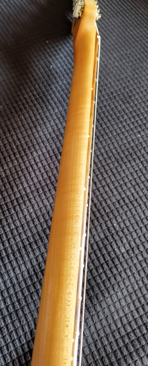 Mástil Telecaster Noventa, nuevo. Plain sawn con un toque flameado.