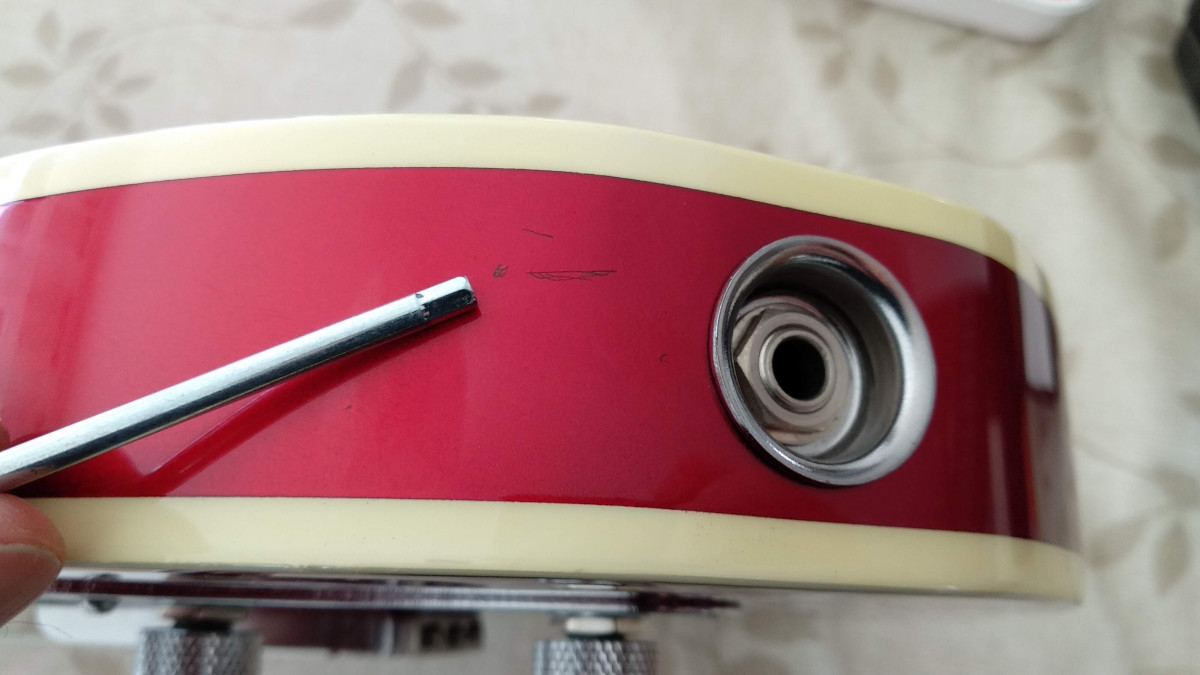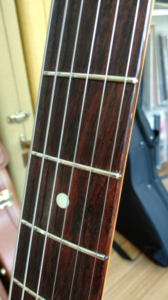 Los trastes están perfectamente y solo tiene una raspadura en la zona superior y otra en el lateral (ver fotos). Por lo demás, está estéticamente muy bien.