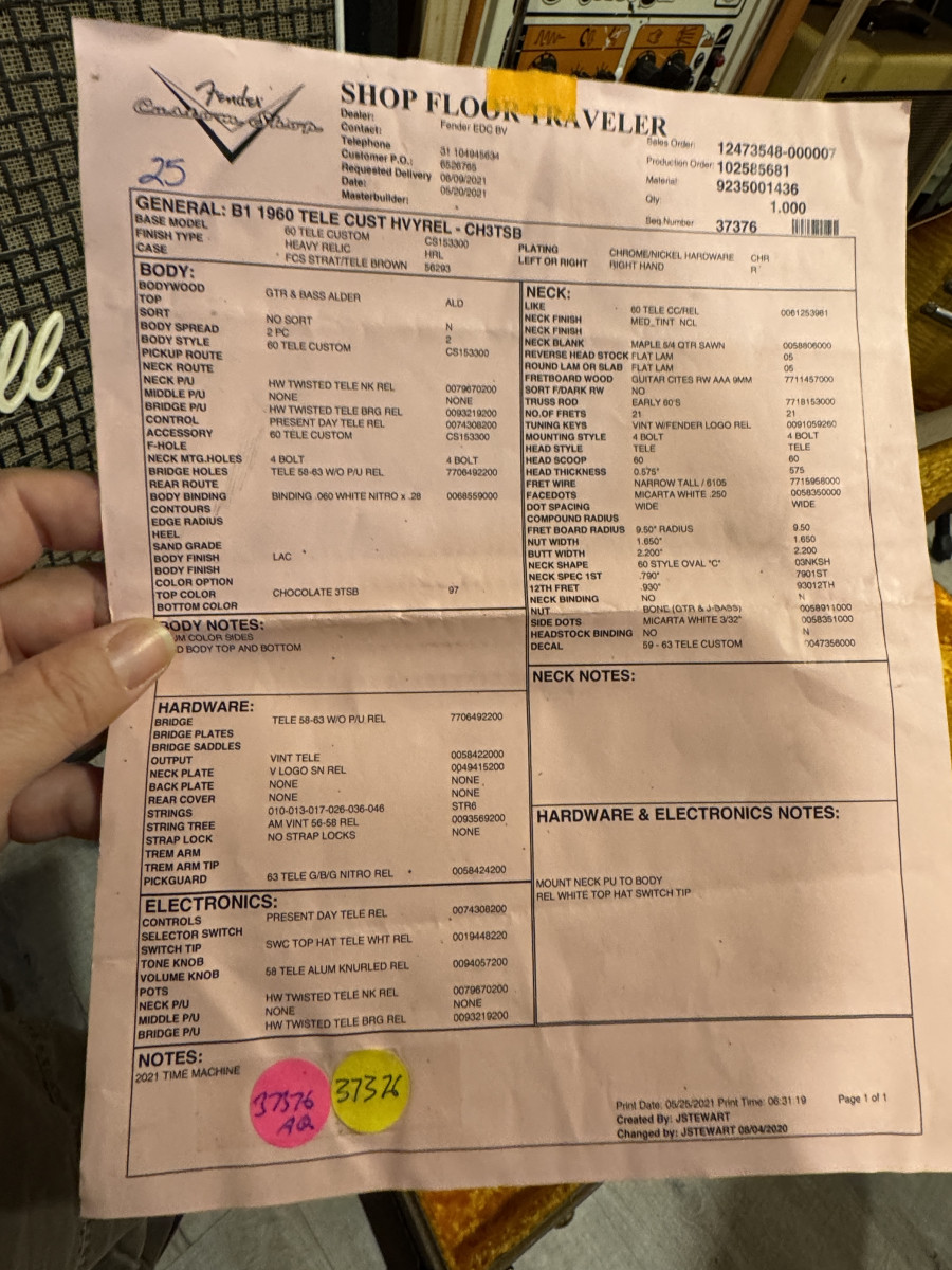 Color sunburst de 3 tonos. Heavy relic. Es una edición limitada.
