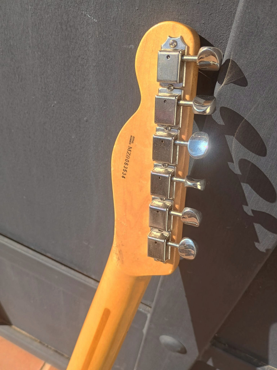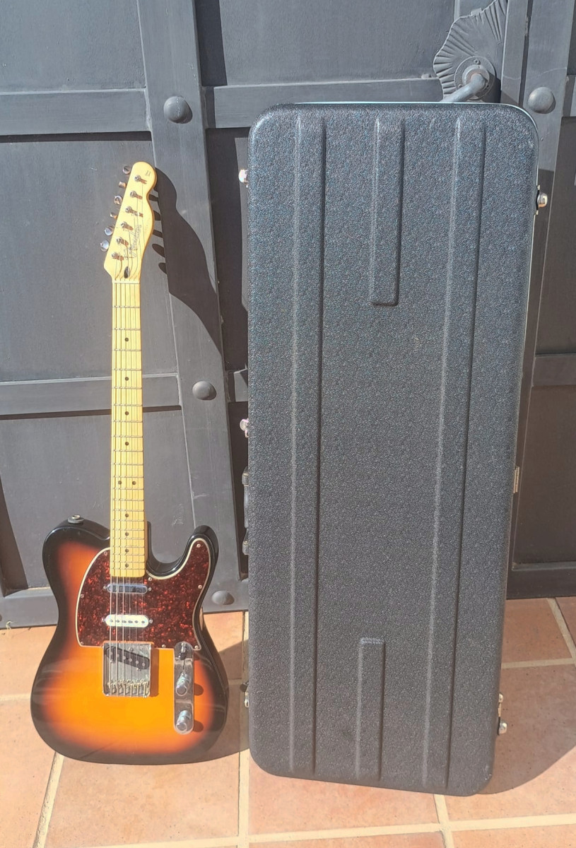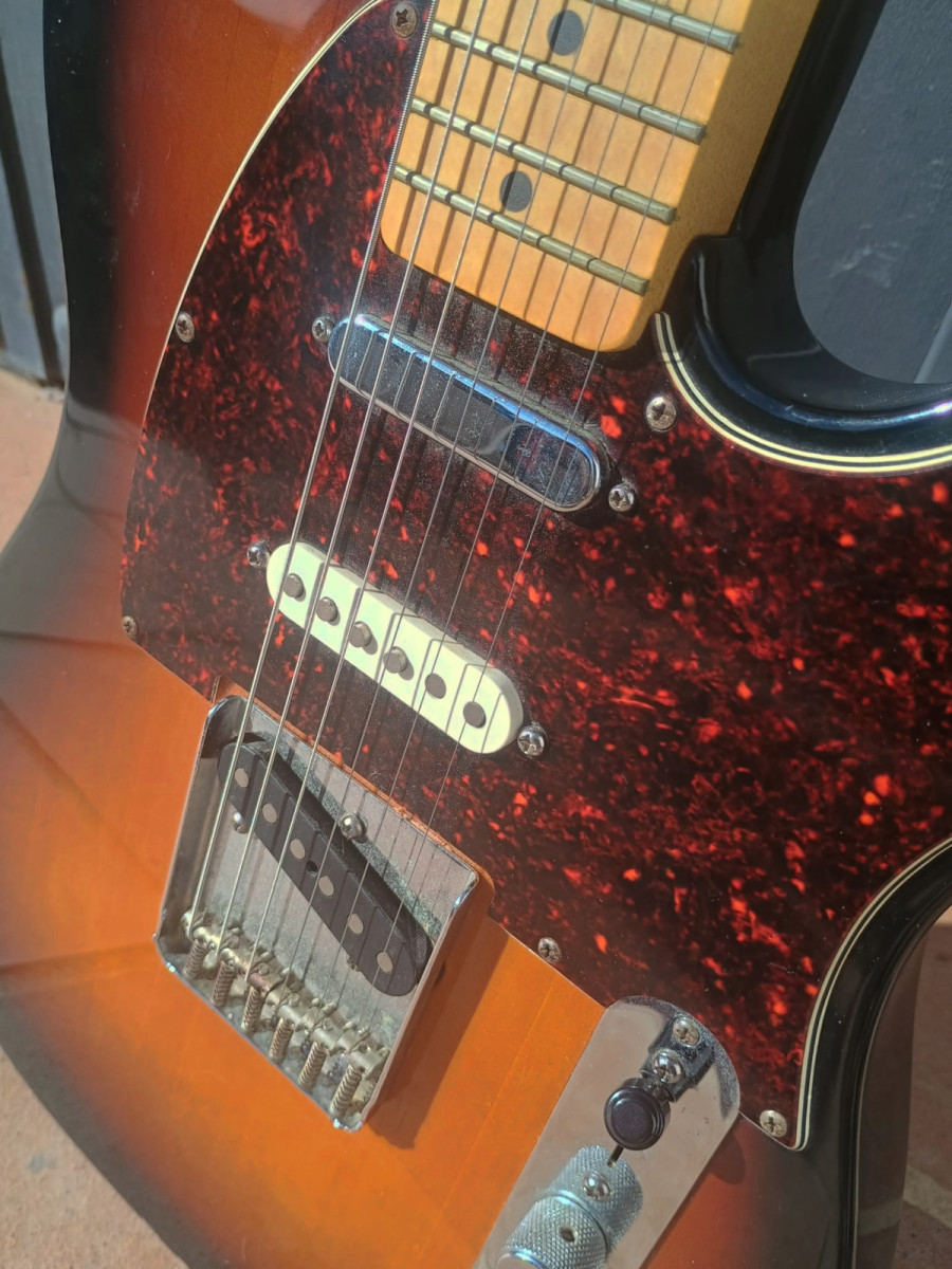 Fender Telecaster Nashville, modelo deluxe, año 2.000, cuerpo de aliso , mastil de arce, de forma C moderno, radio de diapason 12" (305mm), puente de 6 selletas individuales, string through (pasan por el cuerpo), 3 pastillas single coil - mastil Tex-Mex Single-Coil Telecaster, en medio Tex-Mex Single-Coil Stratocaster y puente Tex-Mex Single-Coil Telecaster. Selecionador de 5 posiciones. Funciona perfectamente, acion muy baja, 5 sonidos bastante diferentes entre si. Algunos desperfectos esteticos (ver fotos). Con maleta rigida. Entrega en mano o envio sumando € 25,00 gastos y previa transferencia bancaria o Bizzum. Por favor ni ofertas ni cambios.