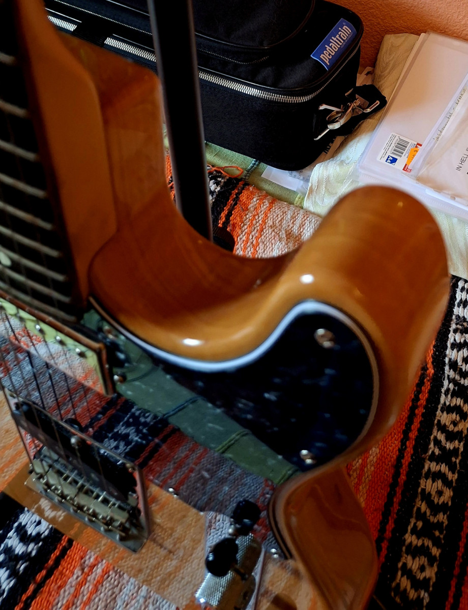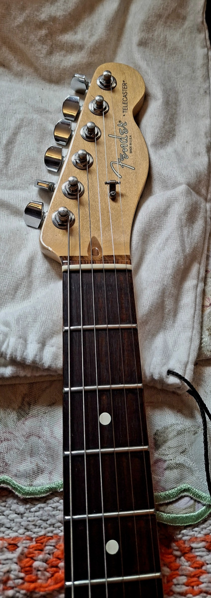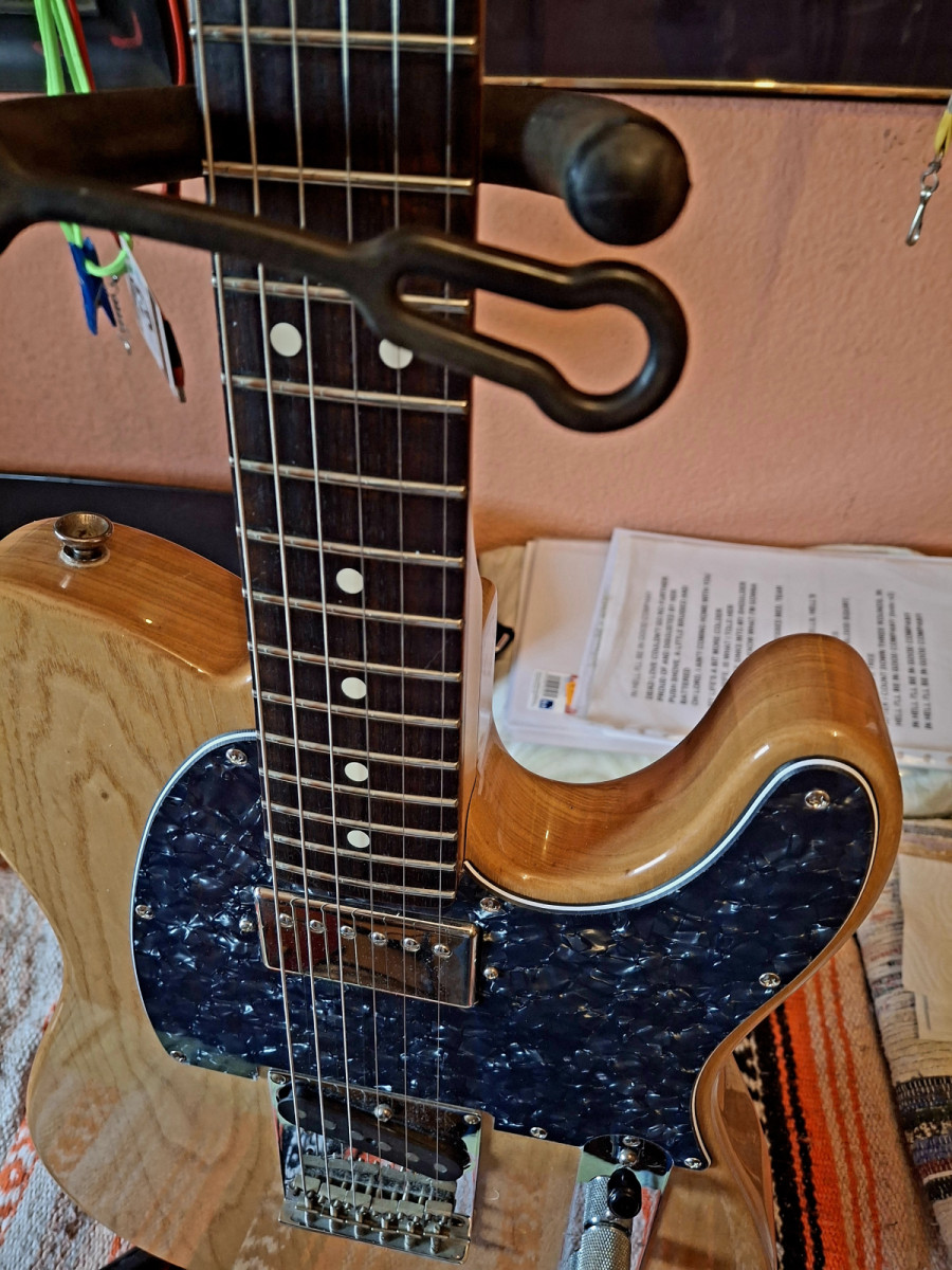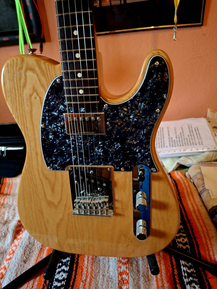 La guitarra esta en un condición supper. Color del madera natural de fresno.