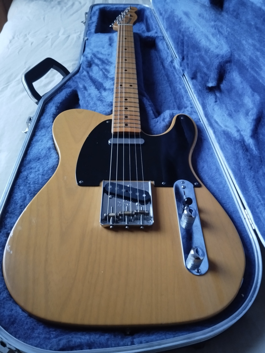 Fender Telecaster Vintage'52 RI del 2007. Está muy bien ajustada del alma cejuela y puente para tocar cómodamente. Suena muy bien.