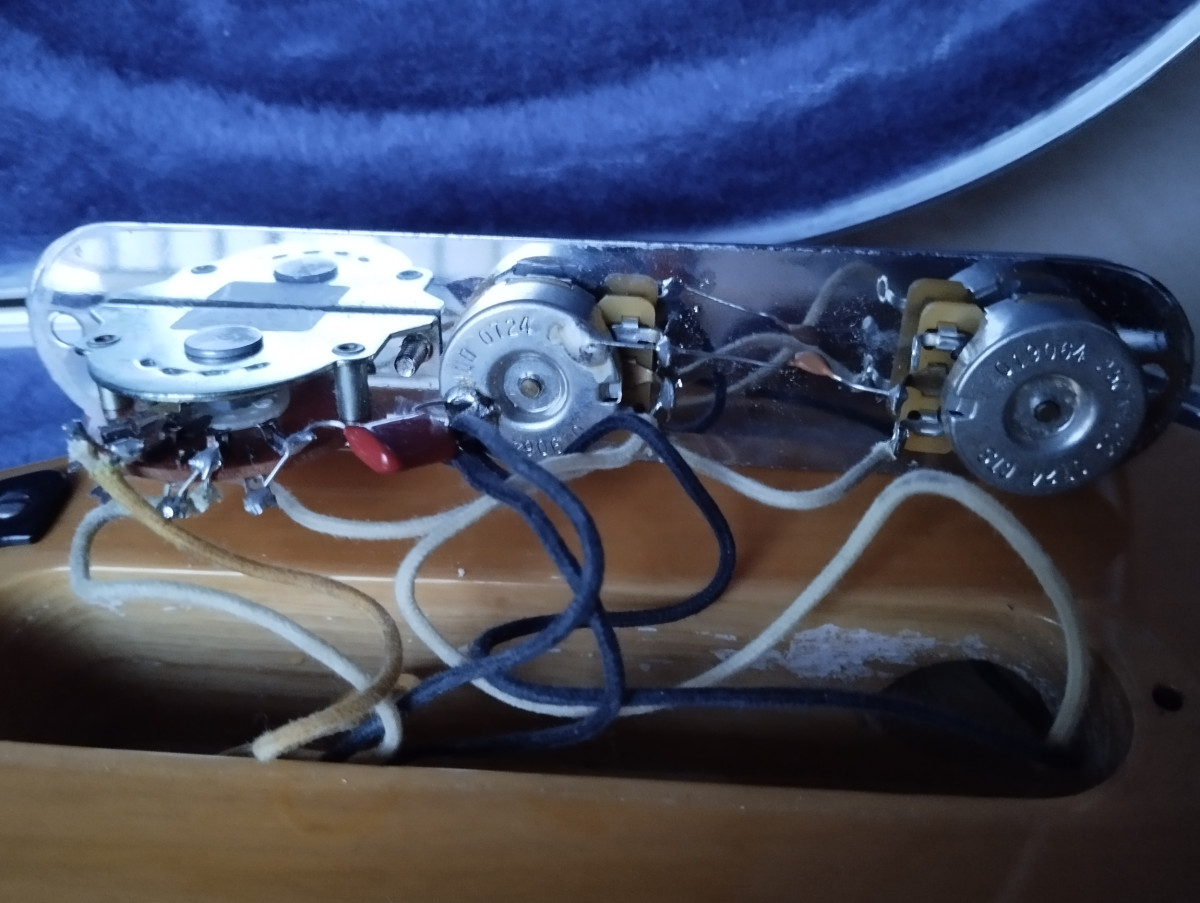 Con algunos pequeños dings de uso como se aprecia en las fotos. Tiene la configuración vintage del selector de pastillas tal y como venían en la época. Bien de trastes. Entrego con un estuche de pistola ya que no tengo el estuche original tweed.